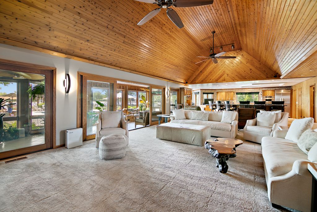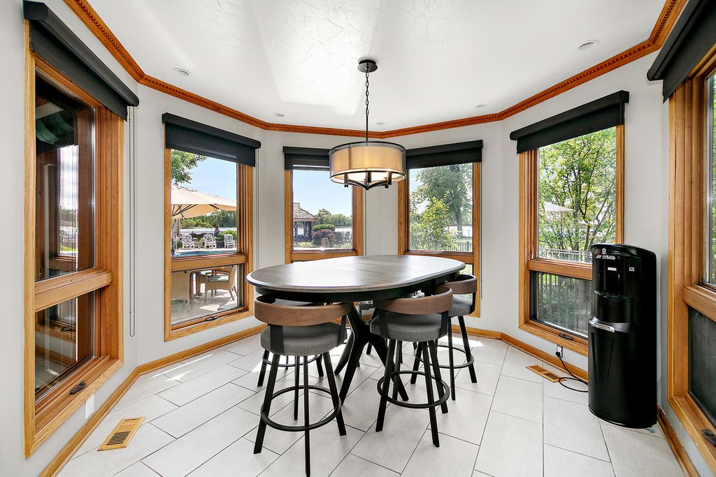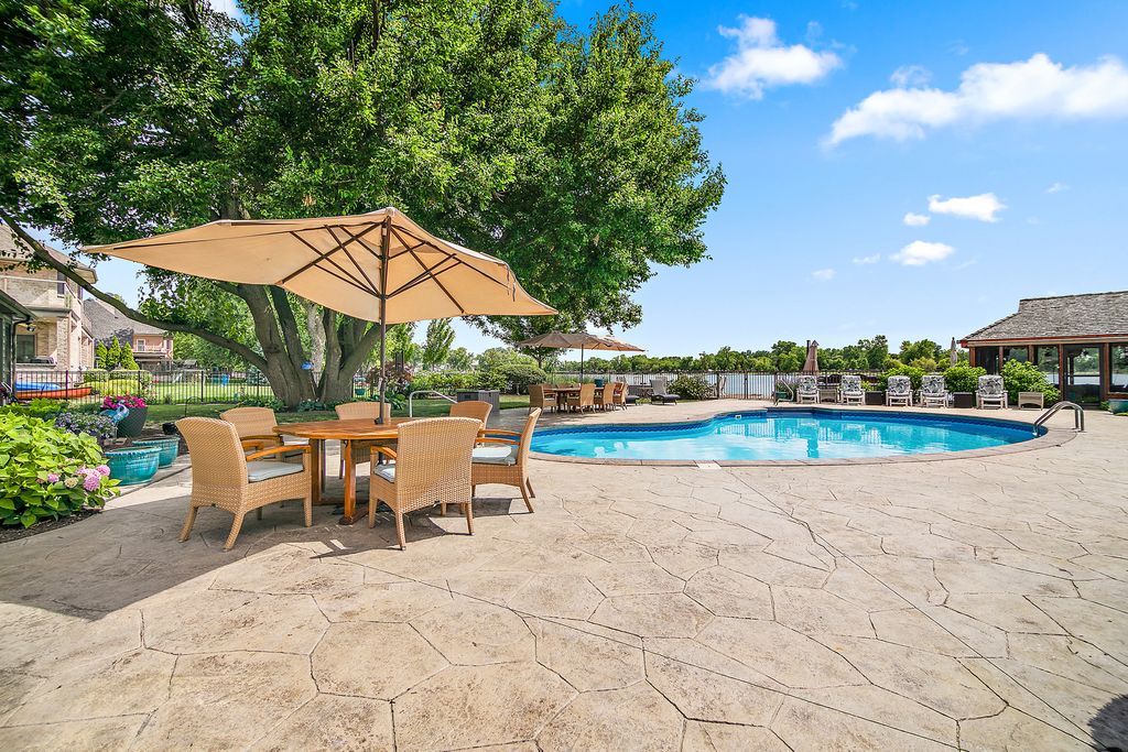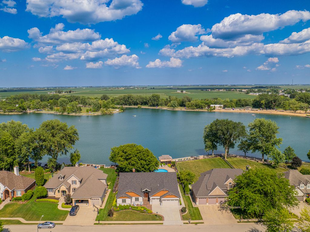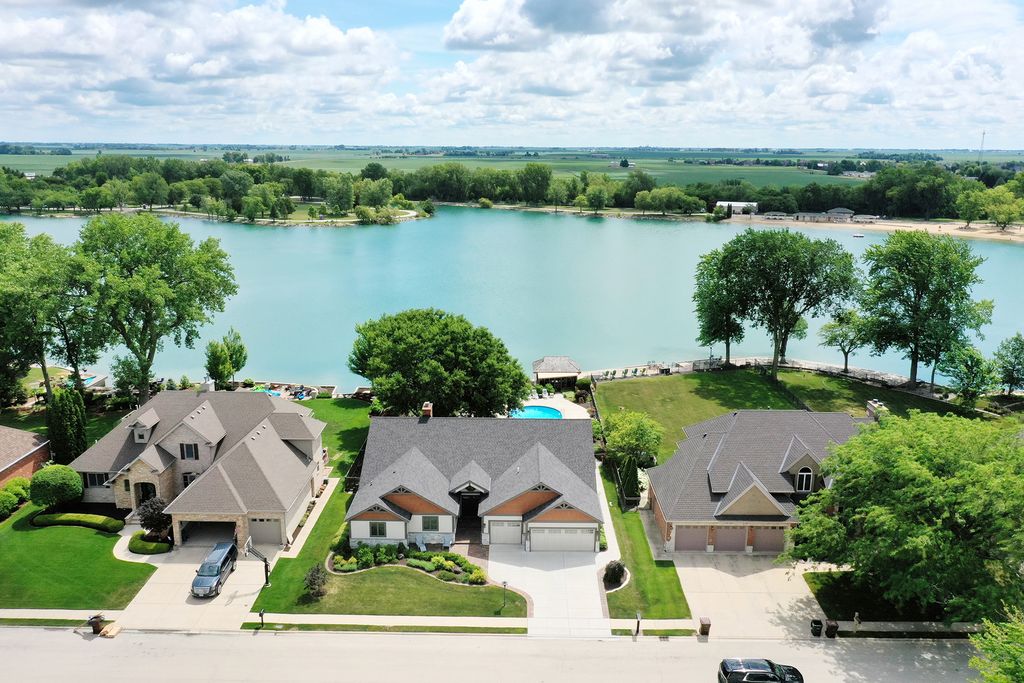 Lakefront Luxury Living on Westshore Blvd | Manteno's Premier Address! Experience one of Manteno's most coveted lakefront properties-an extraordinary custom built ranch offering nearly 4,000 sq ft of refined living space, perfectly positioned on the big lake along prestigious Westshore Blvd. This home is more than just a residence it's a lifestyle retreat. Step into your private oasis featuring a saltwater in-ground pool surrounded by stamped concrete patio, a lakeside cabana, and a built-in firepit-ideal for entertaining or simply relaxing by the water. Enjoy paddle boarding, boating, or fishing right from your backyard. The heart of the home is the massive chef's kitchen, boasting granite countertops, endless cabinetry, stainless steel appliances including a double oven, walk-in pantry, and two islands-one with wraparound seating for 6+ and a second with cooktop. The kitchen opens to a dining space wrapped in windows with lake views in every direction. Soaring cedar lined cathedral ceilings highlight the great room with a dramatic floor-to-ceiling stone fireplace. A wall of glass lines the 40-ft all-seasons room, offering panoramic lake views year-round. The luxurious primary suite is a serene escape, complete with cathedral cedar ceilings, sitting area, private access to the all-seasons room, a large walk-in closet, whirlpool tub, dual sinks, and separate shower. One of the four bedrooms doubles as a home office. Major updates include new roof, siding, and HVAC (full list available). A 2.5-car attached garage completes the package. Broker-owned. Welcome to your own slice of paradise-where every day feels like vacation.
