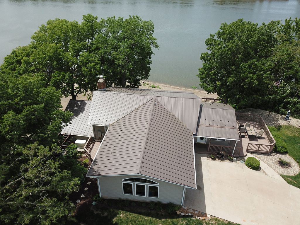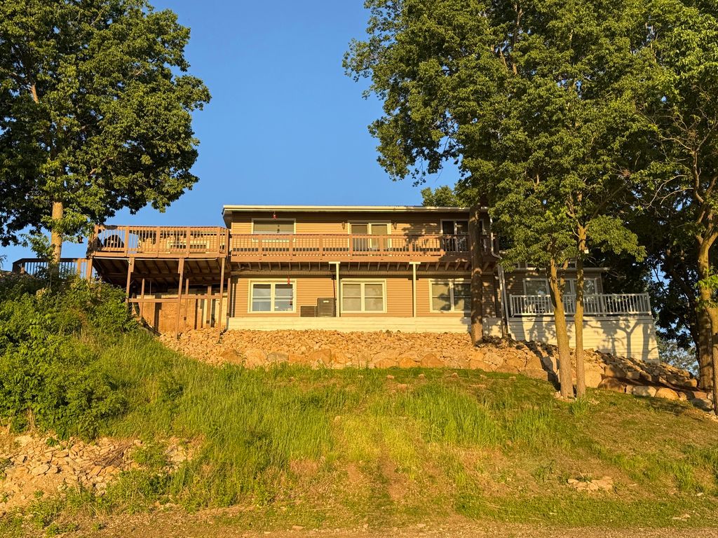 Beautiful, elevated riverfront home overlooking the Illinois River with approx. 162 feet of water frontage in the beautiful town of Hennepin, Illinois. This house has many great features to offer, including large upper and lower decks with beautiful views, nicely landscaped yard, and a walk out basement to a paver patio with hot tub & pergola. Whole house generator. The inside offers a 3-4 bedroom floorplan with a large primary bedroom including bath and walk in closet with beautiful river views. Laundry is just off the primary bedroom. Main level features a nice kitchen with a breakfast bar with river view and spacious cabinetry & pantry with all appliances included. The interior has updated vinyl and laminate flooring and custom window blinds throughout. This home is located near city parks, grocery store, public boat launch, wetlands nature area, and only a 30-minute drive from Starved Rock & I&M canal. Make this your full-time home or vacation getaway. It's a must see to view all the other great features of this one-of-a-kind waterfront property! The sq footage total includes the walk out lower level.