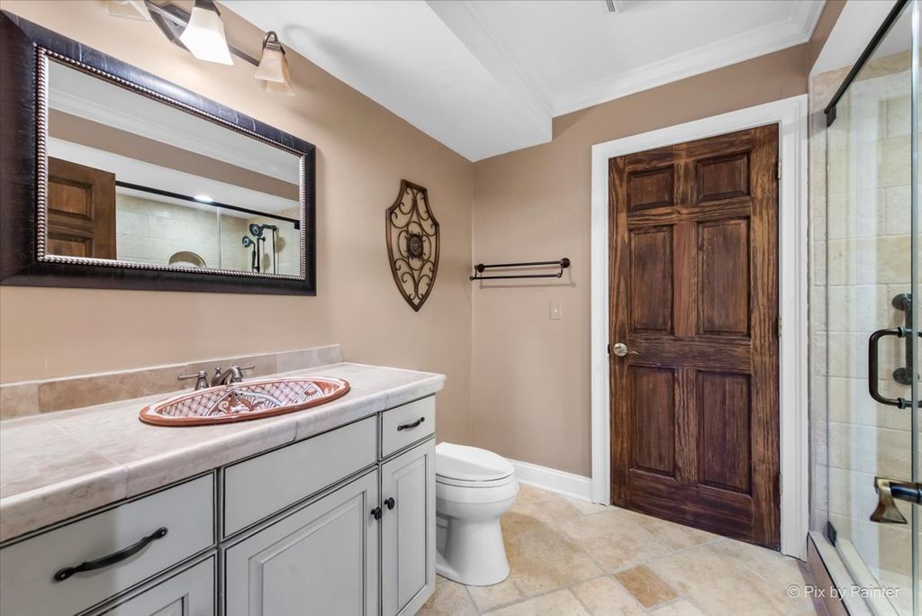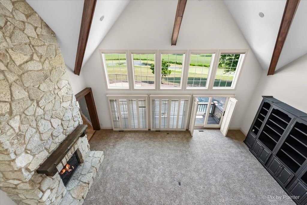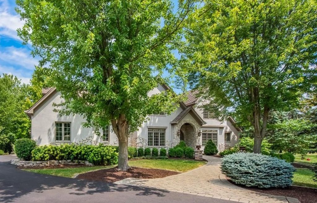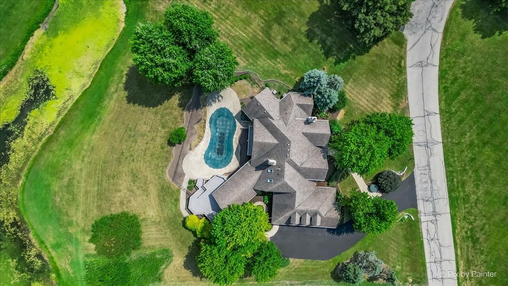 Stunning custom French Country-Style home with an INGROUND POOL located on Turnberry Golf Course with awesome views of a pond and woods beyond. This beautifully crafted stone and stucco home is full of high-end finishes such as: crisscross beams in the breakfast room, limestone and hardwood floors, 3 fireplaces, vaulted ceilings, two-story great room with built-in entertainment center, plantation shutters, first floor master with luxury bathroom and walk-in closet, etc... The sunny Florida room opens to a deck with views of the surrounding countryside. The finished English basement has a huge rec room with wet-bar and fireplace, exercise room with sauna and full bath, and multiple storage areas. On the 2nd floor you'll find two additional bedrooms, a bonus room/playroom, and another full bath. The open floor plan is light, bright, and neutral with new carpeting and freshly painted walls. A truly one-of-a-kind home with timeless style and top-quality craftsmanship throughout!