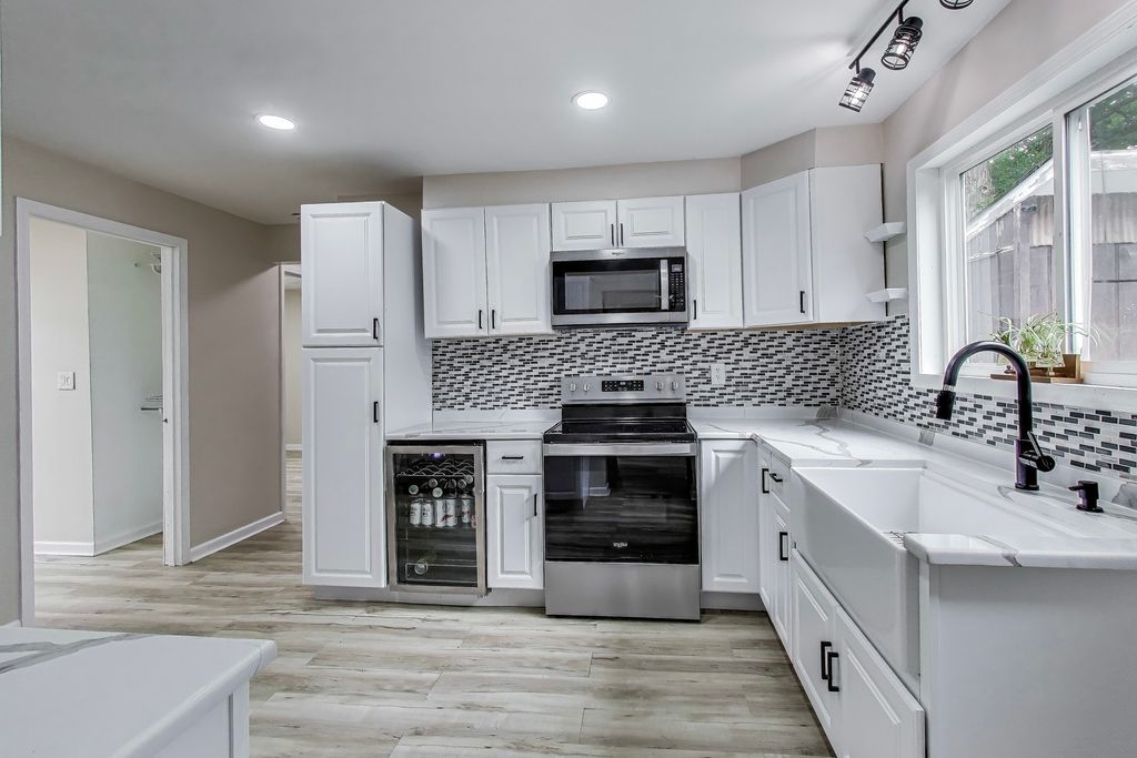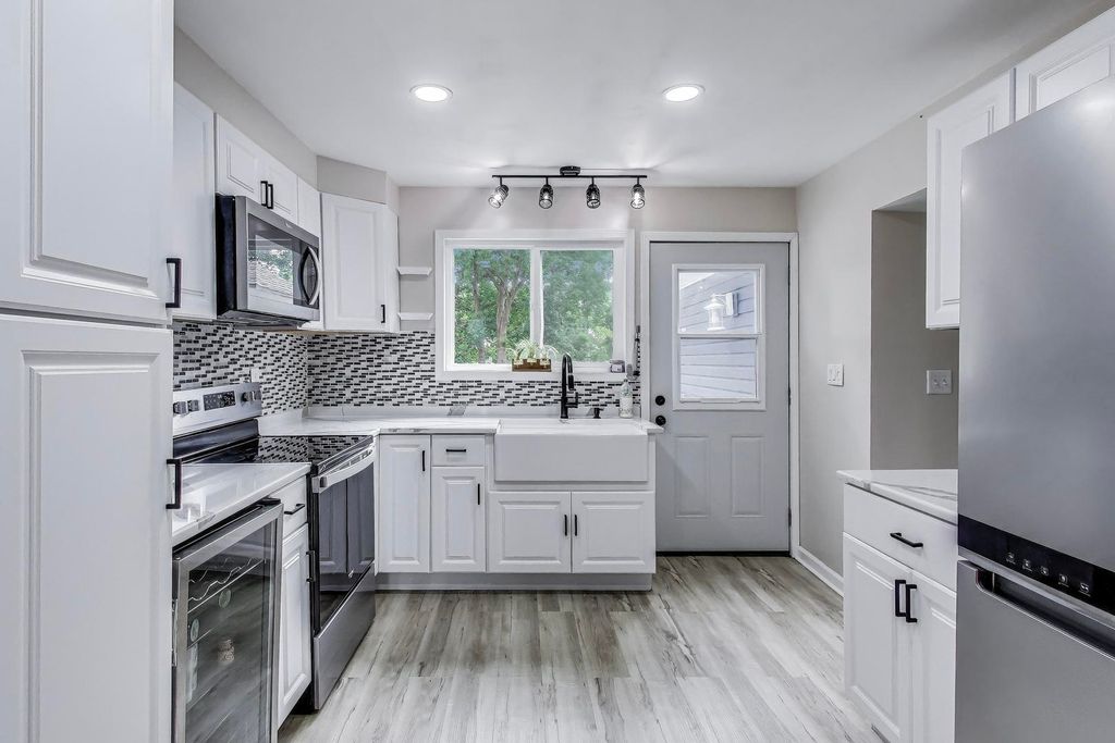 Welcome to your own private retreat on over three-quarters of an acre in Antioch. This updated 3 bed, 2 bath ranch offers a perfect blend of modern updates and outdoor charm. Step inside to an open and airy living area with all-new flooring, recessed lighting, and fresh paint throughout. The remodeled kitchen features white shaker cabinets, stainless steel appliances, a deep farm sink, updated hardware and faucet, custom tile backsplash, and a built-in beverage fridge. The primary, second, and third bedrooms are located off the main hallway near a fully updated bath. An additional bonus room off the living area, filled with natural light, works beautifully as a sunroom, office, or flex space. Both bathrooms have been renovated with modern tile, fixtures, and finishes, including a walk-in shower. A designated laundry area adds everyday convenience, and an outdoor shed provides extra storage. Recent upgrades include new siding, fencing, roof, and windows in 2023. The oversized 2.5-car garage offers plenty of room for additional storage. The outdoor space is the true star of the show, with a massive private yard, two decks, and endless possibilities to entertain, garden, expand, or unwind in your backyard escape.