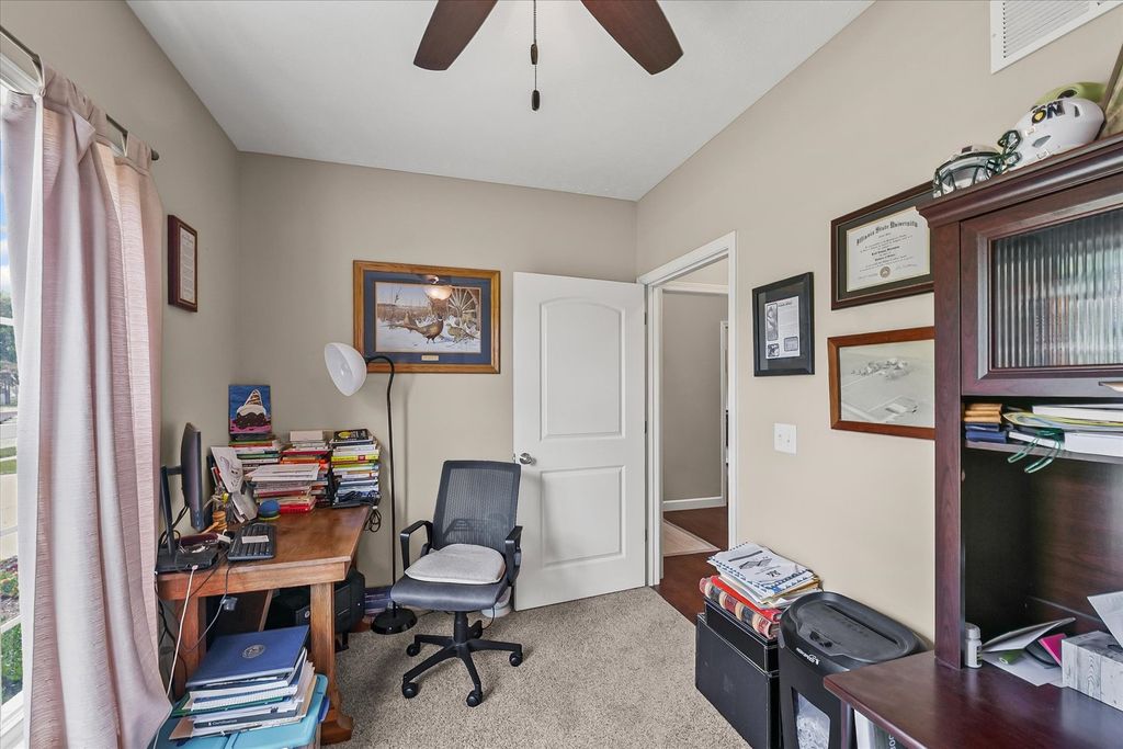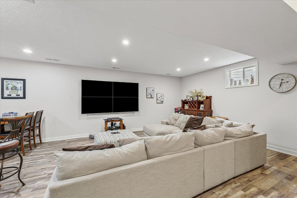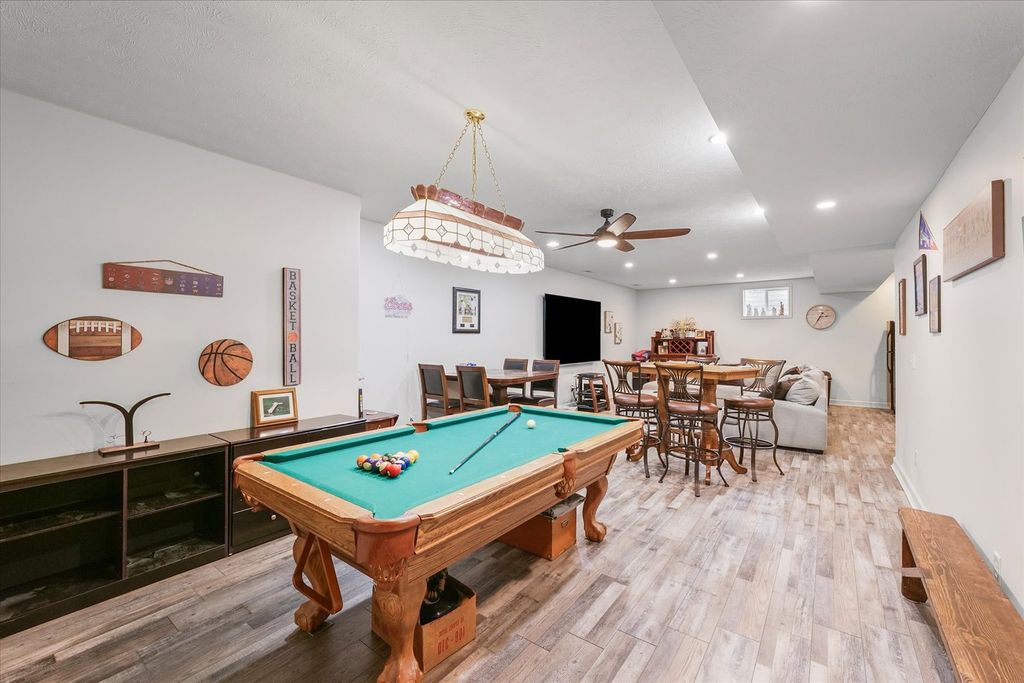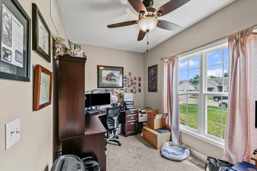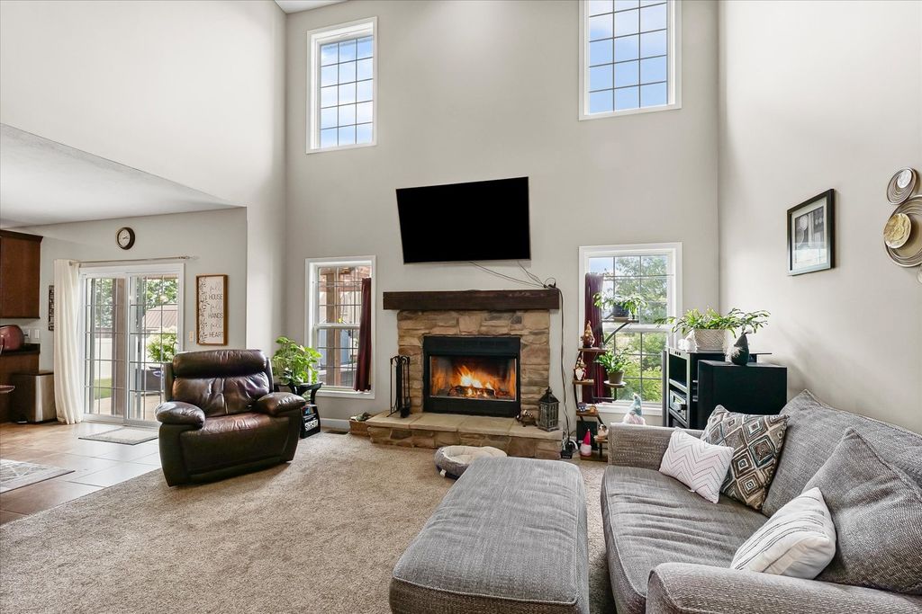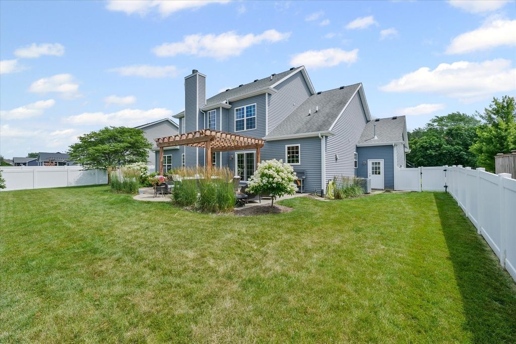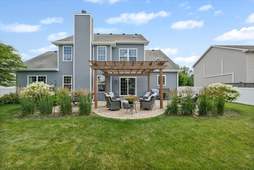 This stunning home is full of charm and thoughtful upgrades! Enter into the expansive great room where soaring ceilings and a gorgeous fireplace create a warm and welcoming atmosphere. The eye-catching gourmet kitchen is a true showstopper-complete with rich maple cabinetry, sleek granite countertops, stainless steel appliances, a walk-in pantry, and an eat-at island perfect for gatherings. A spacious dining area with a built-in buffet makes entertaining a breeze. The main floor features a luxurious primary suite with a spa-like bath, including a double vanity, jetted tub, separate shower, and a generous walk-in closet. You'll also find a main-level office and a versatile study that can easily function as a formal dining room. Upstairs, two comfortable bedrooms share a full bath, while the finished lower level offers even more living space with a large family room, a wet bar with refrigerator, a finished game room, a fourth bedroom, and a full bath. Enjoy outdoor living in the beautifully landscaped backyard with an oversized patio, a pergola added in 2020, and a garden shed-all enclosed with a privacy fence. Additional features include a heated garage (2017), new air conditioner (June 2025), washer and dryer (2019), microwave (2019), and fiber internet (2024). This home has been well maintained and is move-in ready for its next chapter!