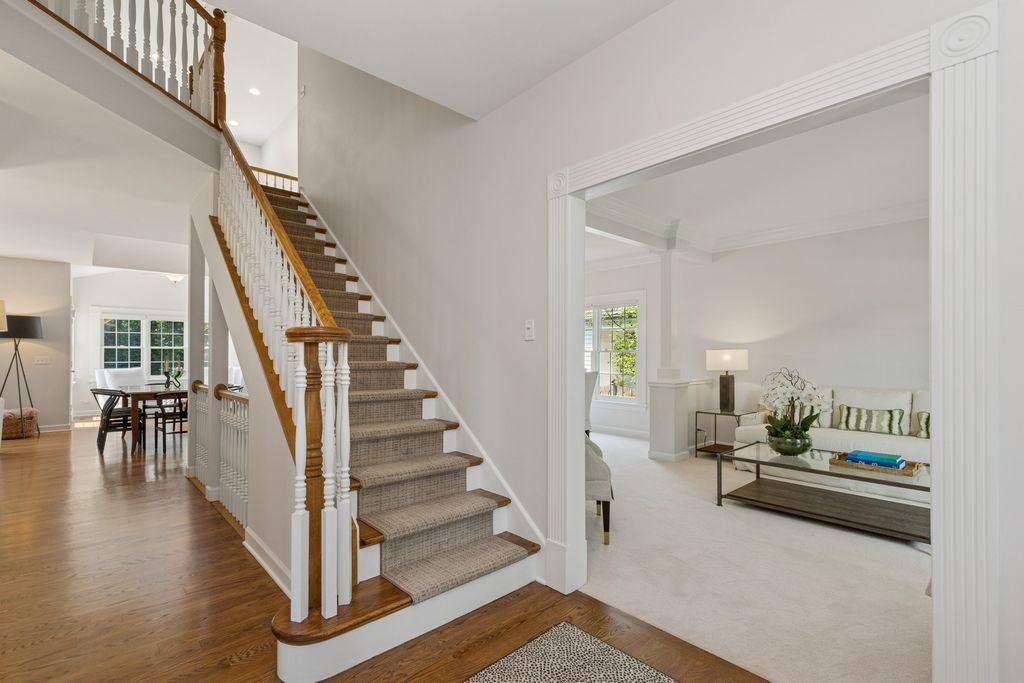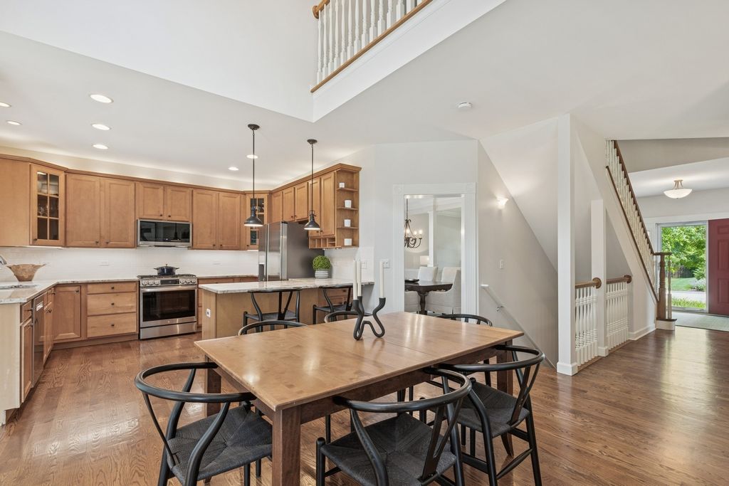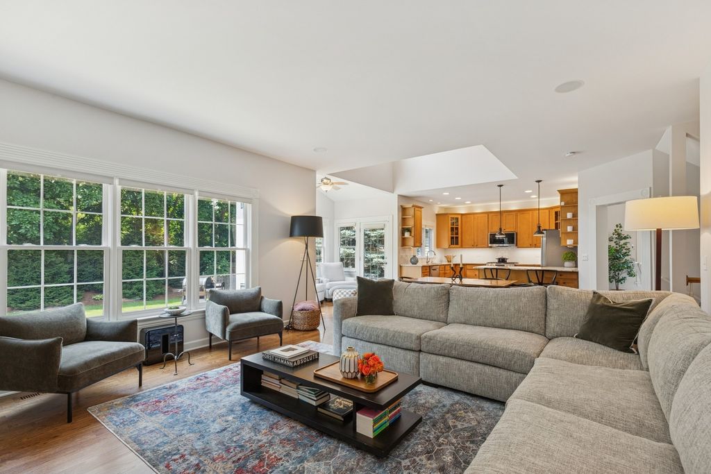 Built by Landmark Homes and ideally situated on a quiet cul-de-sac in the highly desirable Providence Woods community, this beautifully maintained home offers space, flexibility, and thoughtful upgrades throughout. Enjoy approximately 3,000 square feet of light-filled living space above grade, plus an additional 1,300 square feet in the finished basement with a full bath-providing ample room to live, work, and play in comfort and style. The versatile layout includes 4 to 5 bedrooms and 4 full baths, including a first-floor full bath that's perfect for guests. The spacious 3-car garage features an EV charger, while modern conveniences like a SimpliSafe security system, smart doorbell, Nest thermostat, water softener, and ultra-filtration drinking water system enhance everyday living. Inside, you'll find gorgeous architectural details, including custom built-ins flanking the family room fireplace, rich trim work, fluted casings, crown molding, and a custom mudroom with cubbies. The kitchen features timeless cabinetry, stainless steel appliances, granite countertops, and a large center island with seating, seamlessly connected to a dramatic two-story breakfast room bathed in natural light. A cozy sunroom opens through glass French doors to a beautifully landscaped, fenced backyard with a paver patio and outdoor speakers-perfect for relaxing or entertaining. A private office with French doors provides a quiet, dedicated workspace. The curb appeal is just as impressive, with a paver walkway leading to a full-width covered front porch, ideal for enjoying quiet neighborhood moments. Upstairs, the spacious primary suite offers a large walk-in closet and a spa-like bath with dual sinks, jetted tub, and separate shower. Three additional bedrooms, a full bath, and a convenient second-floor laundry room complete the upper level. Outdoor enthusiasts will love the direct access to McDonald Woods Trail Loop and the LCFP Millennium Trail, plus Oak Ridge Park's disc golf course and splash pad just minutes away. And for families, Millburn Middle School is just two blocks from your front door!