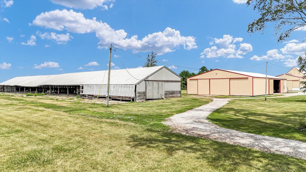 Welcome to a one-of-a-kind rural retreat that offers the best of country living! Nestled on 9.4 beautifully maintained acres, this property is more than just a home-it's a lifestyle. The charming farmhouse-style home features warm, welcoming spaces filled with natural light and vintage character. Enjoy views of the countryside from nearly every room, with cozy touches like arched doorways, a sun-drenched sitting area, and a classic fireplace. Outside, the real showstoppers are the outbuildings. The iconic red-trimmed barn brings timeless beauty and function, while the massive shop is ready for all your hobbies, projects, or storage needs. Whether you dream of hosting events, housing animals, or running your own business, you've got the space to do it all. Wide open fields surround the home, giving you postcard-worthy views in every direction. From sunrise to sunset, the peaceful setting is simply unbeatable. This is your chance to own a little slice of the Midwest-with room to grow, play, work, or just breathe. Don't miss out! Call today to schedule a private showing.