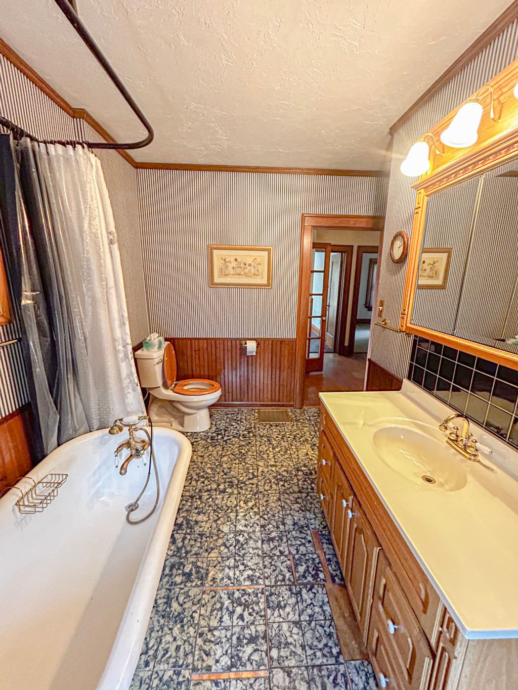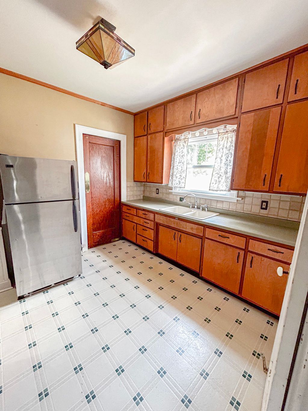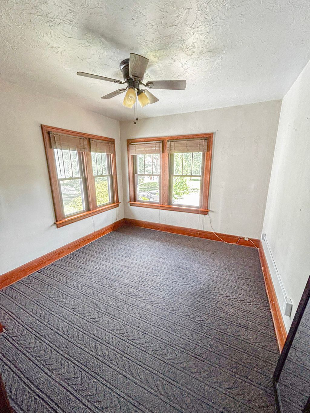 Spacious and well-maintained 3-bedroom, 1.1 bath home with a full basement, ideally located in desirable Riverview just two blocks from Cobb Park. The exterior offers a charming stucco finish in excellent condition, a fenced front and backyard, and a detached 1.5-car garage. Enjoy quiet mornings or relaxing evenings on the expansive front porch. Inside, the living area showcases beautiful original wood trim, historic crown molding, and a cozy wood-burning fireplace. French doors lead to a stunning study with unique built-in shelving, perfect for a home office or library. The kitchen features solid wood cabinetry, stainless steel appliances, and an adjacent half bath. Upstairs, you'll find three spacious bedrooms, a full bathroom, a large landing, a laundry chute, and access to a partially finished attic. The full basement includes an additional shower and laundry area, with some updated plumbing and electrical. This home is filled with character and charm-schedule your private showing today!
