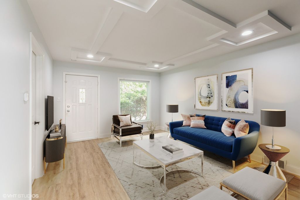 Welcome to this stylishly renovated 5-bedroom bungalow that perfectly blends comfort, functionality, and modern design, a spacious finished lower level-ideal for families or multi-generational living. Featuring stunning designer details like a custom geometric accent wall and an elegant coffered ceiling with recessed lighting, this home also boasts a brand-new modern kitchen with two-tone shaker cabinets, quartz countertops, stainless steel appliances, and a sleek backsplash. With two full bathrooms, a large family room perfect for entertaining, and thoughtful updates throughout-including a new electrical system, new AC unit, new water heater, and a brand-new roof-every corner has been upgraded with modern finishes and mechanicals. Complete the picture with a one-car detached garage and a fully fenced backyard perfect for pets, kids, or summer BBQs, this move-in-ready home is a true turn-key opportunity you won't want to miss!
