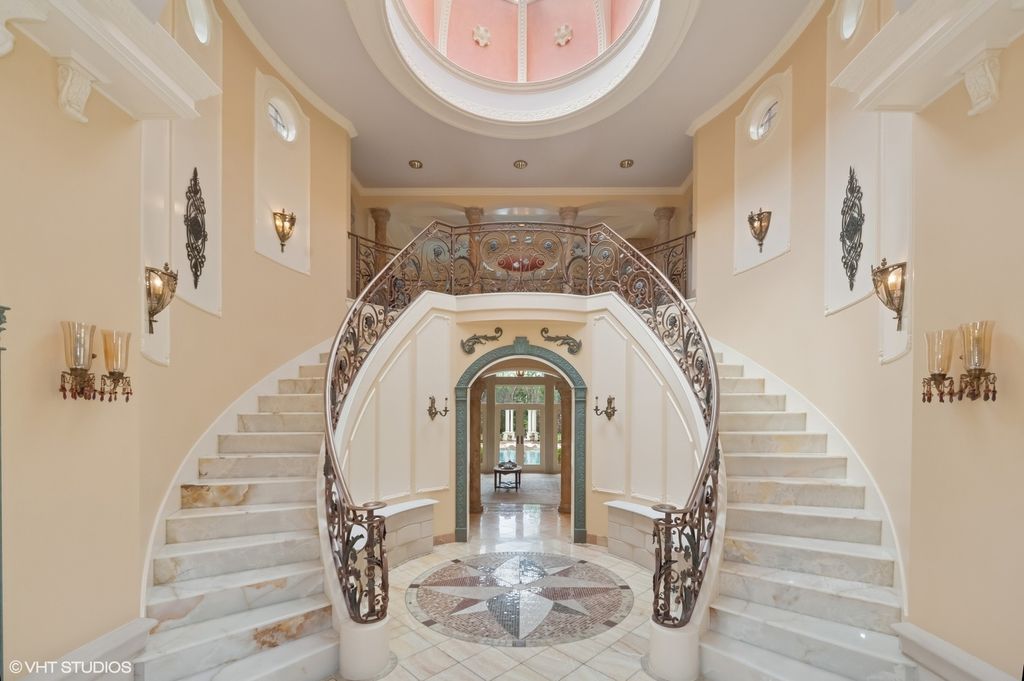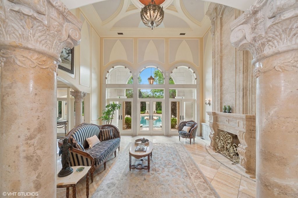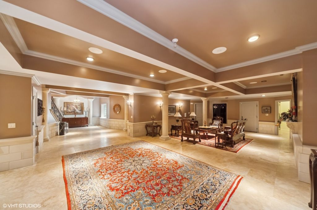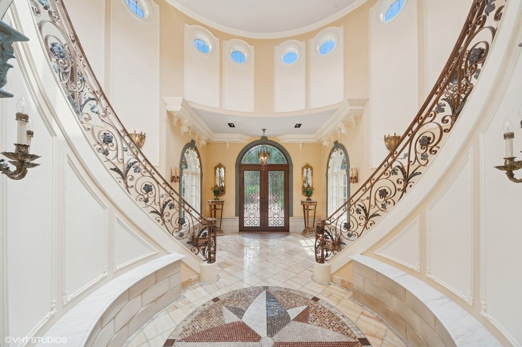 Welcome to a realm of unmatched elegance and convenience-a stunning estate poised on nearly two serene acres that promises to be nothing short of your personal haven. As you meander up the impressive driveway, the grand two-story foyer welcomes you with an airy embrace, thanks to those soaring high ceilings, setting the tone for the rest of the home. Imagine waking up in the luxurious first-floor master suite, where comfort and privacy are at their peak. Downstairs, the finished basement beckons with endless entertainment possibilities, while the dedicated sports court invites hours of active fun. And for those who thrive on fitness, the state-of-the-art gym is your go-to sanctuary for motivation and peak performance. Step outside, and you'll find a fenced-in yard that feels like your own private paradise. Picture yourself taking a dip in the sparkling pool or unwinding by the serene fountains. Whether you're lounging in the charming gazebo, soaking in the relaxing hot tub, or strolling around the lush landscape adorned with tall, privacy-ensuring trees, every moment here is an exclusive retreat. The limestone corbels and soffits, stamped concrete patios, and driveway all add to the sophisticated vibe. But that's not all-this estate is packed with thoughtful features like Marvin windows and doors, a full-home generator for peace of mind, and heated floors on both levels to keep you cozy. With abundant closet space, a spacious laundry room, and a 17 zone sprinkler system, every detail is designed to enhance effortless living and grand entertaining. This is more than a home; it's a lifestyle of unparalleled refinement, seamlessly blending sophistication, functionality, and luxury.