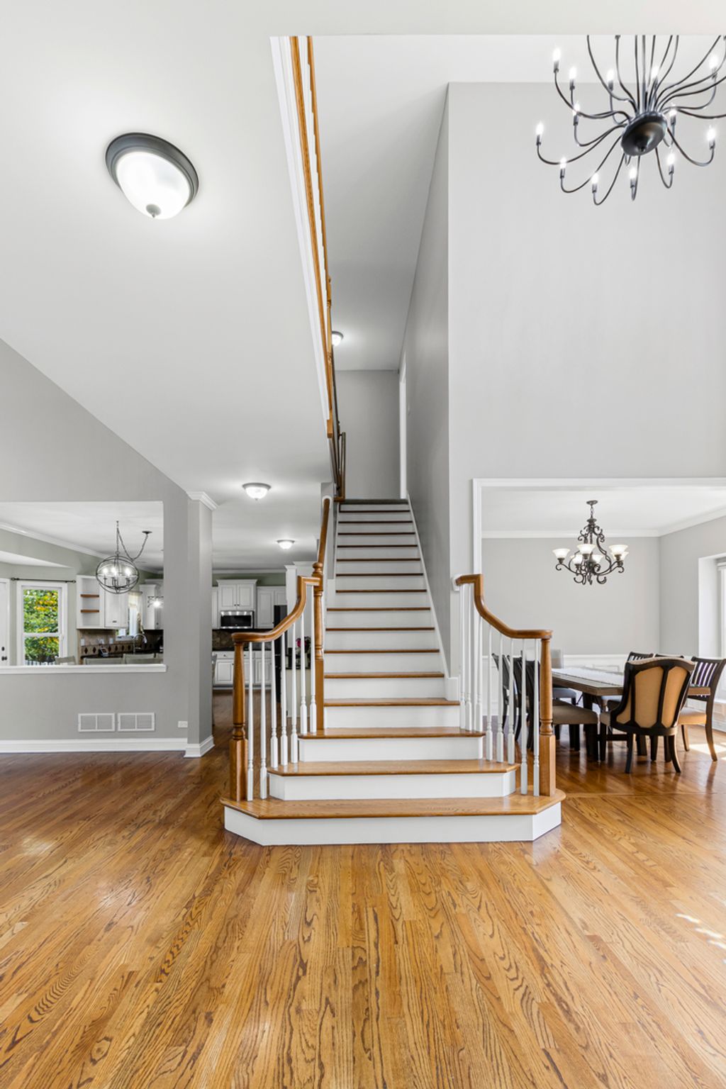 Stop looking-you've found your new home! Welcome to 4 Persimmon Lane, a stunning brick residence in the sought-after Thornwood Subdivision. From the moment you step inside, this elegant home captivates with its open floor plan, 9-foot ceilings, and freshly painted interiors that exude style and sophistication. The main level exudes elegance-hardwood floors, crown molding, and oversized windows fill the living and dining rooms with natural light. A private office with French doors offers the perfect balance of charm and function. At the heart of the home, the two-story family room showcases a magnificent fireplace flanked by four soaring windows with breathtaking views of the fenced yard and fire pit-a space equally suited for grand entertaining or cozy evenings with family. The gourmet kitchen is a showstopper, boasting granite countertops, stainless steel appliances (including a brand-new 2025 refrigerator, and Microwave 2024), double ovens, beautiful cabinets, a walk-in pantry, and an island with seating. The adjacent breakfast area opens to the paver patio, blending indoor elegance with outdoor enjoyment. Upstairs, retreat to a luxurious master suite featuring a tray ceiling, spa-like bath with double vanities, whirlpool tub, and walk-in shower with seating. A second en-suite bedroom, two additional spacious bedrooms, and a full bath complete the level-all enhanced by new carpet throughout. The finished basement expands your lifestyle with a recreation room, theater, wet bar, gym, fifth bedroom, and full bath, all Upgraded with brand-new carpet -truly the ultimate entertainment haven. Step outside to your private oasis: a fenced yard, deck, paver patio, and fire pit surrounded by mature landscaping-perfect for gatherings or peaceful evenings under the stars. As a resident of Thornwood, you'll enjoy exclusive access to a clubhouse, pool, tennis courts, volleyball, basketball, and fitness center, parks, walking and bike trails. Plus, this home is part of the award-winning St. Charles School District. You have the total package. Recent updates make this home truly move-in ready: A new roof with transferable warranty (2025), brand-new carpet on the second floor and basement (2025), and freshly painted interiors throughout multiple rooms and hallways (2025) create a fresh, modern look. Additional upgrades include new exterior lighting, chandelier, and hallway fixtures (2025), a new master bedroom ceiling fan (2025), water heater (2025), and garbage disposal (2025). Recent appliance updates include a new microwave (2024) and washer (2024), ensuring convenience and peace of mind for the new owner. Don't just buy a house-claim a lifestyle at 4 Persimmon Lane. Schedule your showing today!