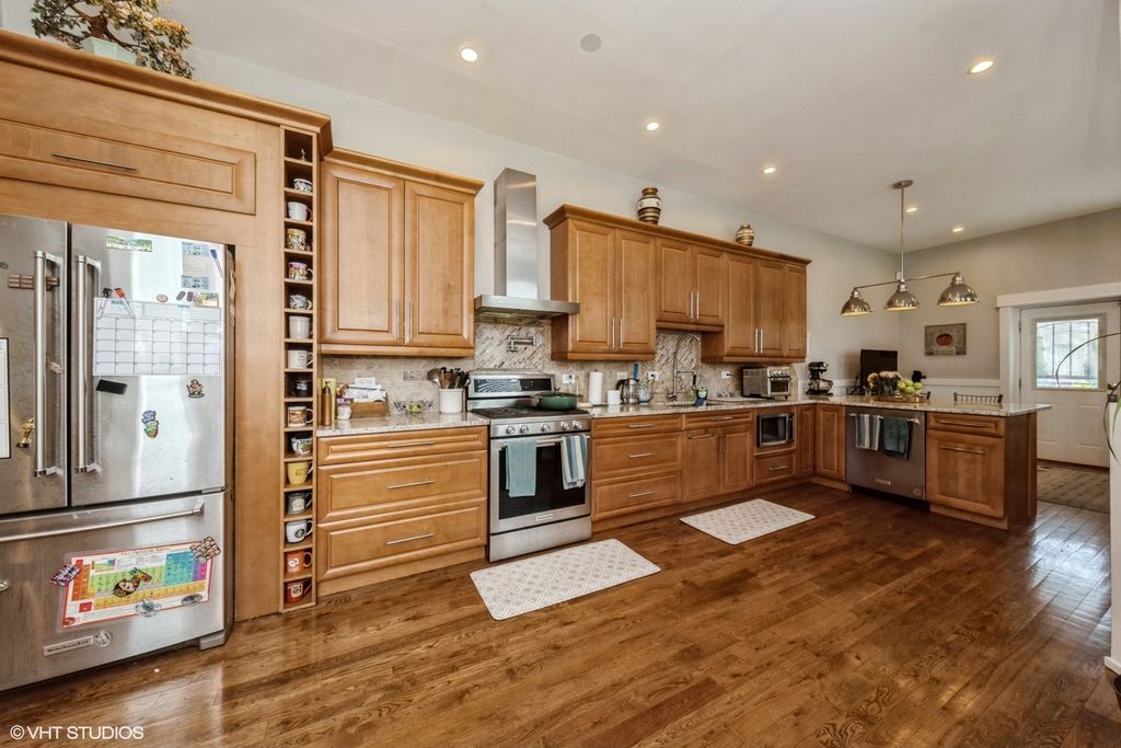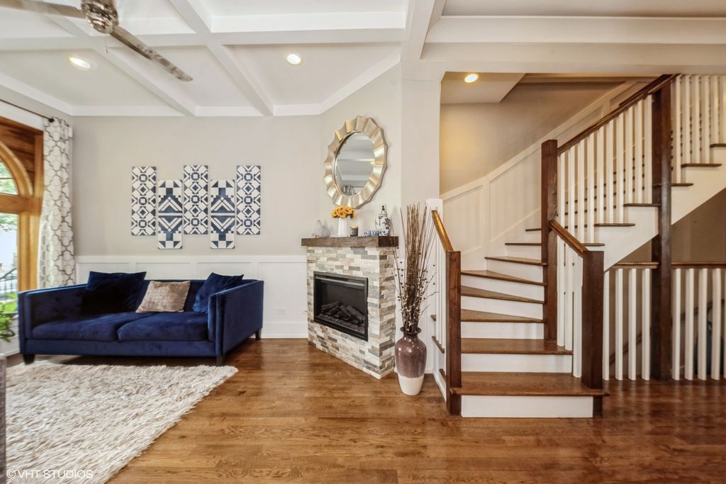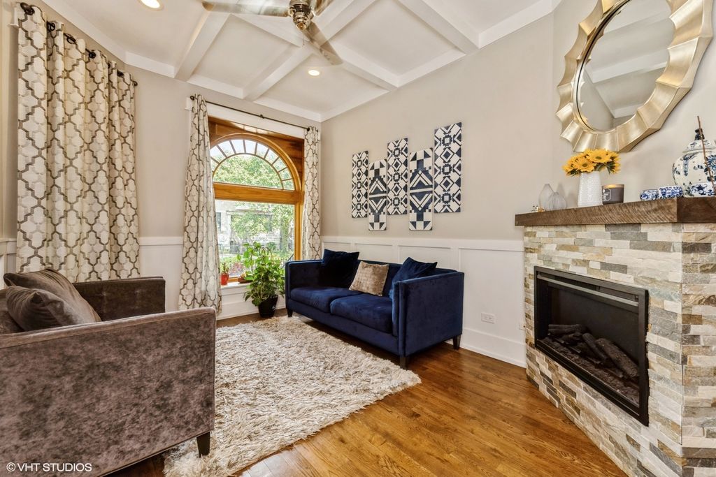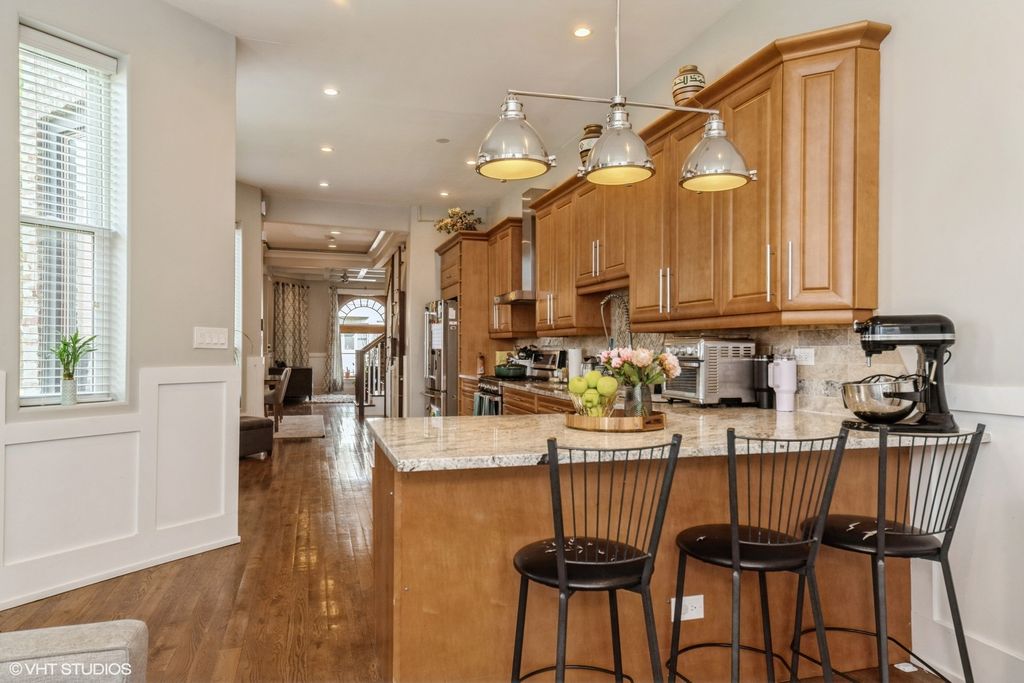 Beautiful Graystone in the heart of N Kenwood. This spacious 3 story above ground home, in addition to a finished basement, has been kept and maintained extremely well. 5 Bedroom, and 4 Full baths. Coffered ceiling, wainscoting,and track lighting on the first floor. Gourmet kitchen has Honey Maple cabinets, Stainless Steel Appliances. Breakfast bar. A separate cozy Family Room. Luxurious 3rd Floor Primary Suite, Carerra marble tile in the En-Suite Full bath. 3 Bedrooms on the 2nd Level. Jack/Jill Bath. 2nd Floor Laundry. 90+ Efficiency dual Furnace, Storage, 5th bedroom in Basement, 2nd Kitchen in the lower level/Basement. Large Recreation room. Exterior access. Updates: Newer Furnace 2nd Floor 2021. Newer Furnace Main Floor 2025. Refinished Basement Flooring Laminate and carpeting, both in 2025.All bedrooms painted 2020. Minutes away from Lake Michigan, Lakeshore Drive, Interstate access, Groceries, and Shops.
