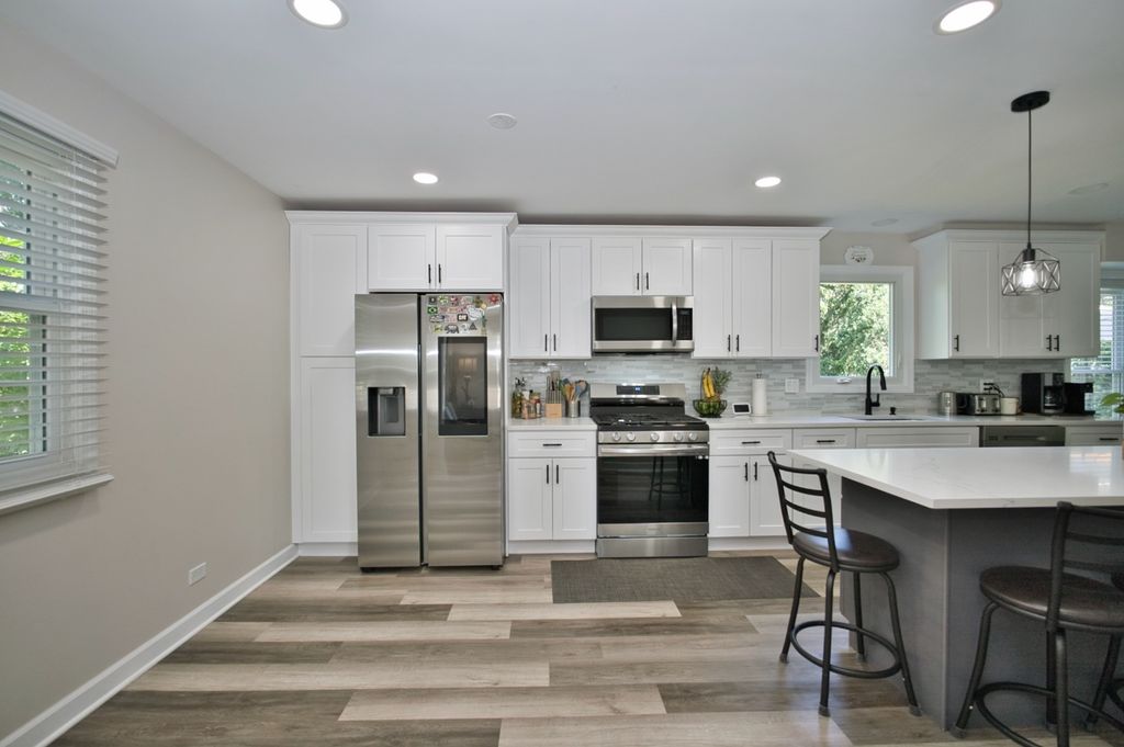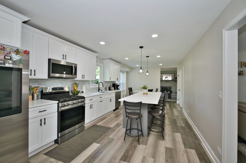 WOW! Welcome Home, you'll ABSOLUTELY LOVE this Fully Updated home in Highly Sought-After Naper Carriage Hill on a Large Professionally Landscaped Lot! Walking Distance to the Elementary School and to the Neighborhood's Optional Pool and Tennis Club and a Short Drive to Downtown Naperville! This 4 Bedroom 2.1 Bath Beauty Boasts White Trim Package & 6 Panel Doors throughout, New Luxury Vinyl Floors & Baseboard throughout most of 1st Level! You'll LOVE the All-New Modern Kitchen with a Massive Eat-In Island, Custom White Cabinetry with Crown Molding, Quartz Countertops, Recessed Lighting with Dimmers, Farm Style Sink, USB Plugin Outlets, SS Appliances & Glass Tile Backsplash & Eating Area! Adjoining the Kitchen is the Family Room with Refinished Hardwood Flooring, Brick Surround Fireplace and Custom Mantel, Sconce Lighting & Sliding Doors to Rear Lot Boasting a Large Paver Patio & Mature Professionally Landscaped Lot! Back inside on the 1st Level you've got a Fully Updated Hall Bath & 1st Level Laundry with Cabinetry! Heading Upstairs are Four Spacious Bedrooms, Gleaming Refinished Hardwood Flooring, Fully Updated Baths Including Primary Suite with Glass Door & New Tile Surround Shower & Fixtures! Primary Suite also Includes a Large Walk-In Closet with Built-In Shelving! This Amazing Home also includes a Finished Basement with Recreation Room & Work-Out Room! So Much Additional Space & Yet Plenty of Storage! There is Nothing to Do Here, All New within the Last 3 Years Including Roof, Windows, HVAC, Flooring, Window Treatments, Kitchen, Fixtures, Bathrooms, So Much More! Come See this Amazing Home TODAY!