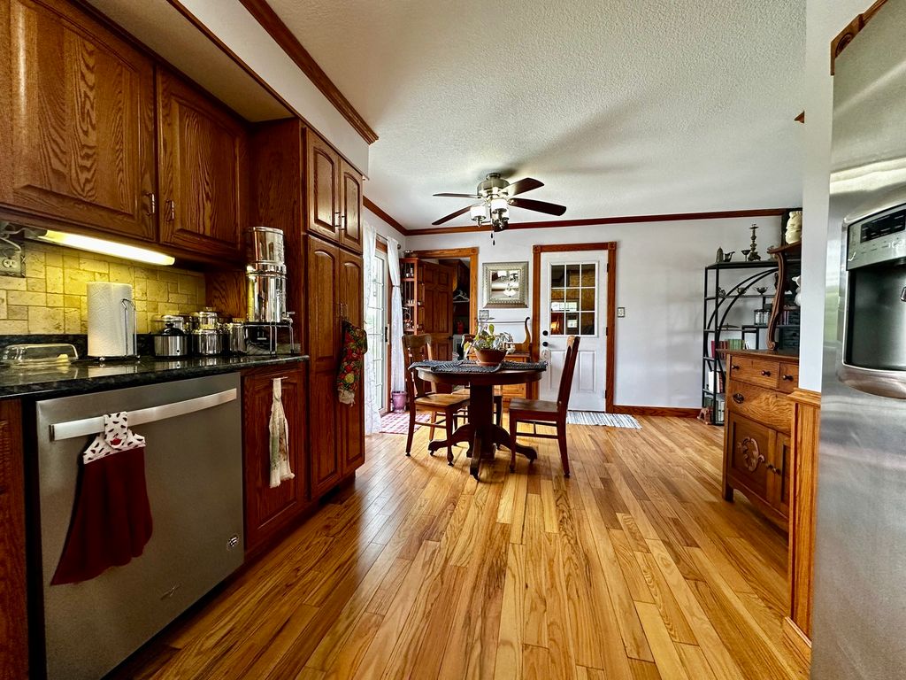 This beautifully maintained home sits just southwest of Clinton and offers 4 bedrooms and 2 full baths, including a finished basement with full bath, family room, and 4th bedroom (egress window). Custom oak doors and trim throughout, custom-built cabinetry, granite countertops, and stainless steel appliances in the Kitchen. Enjoy the convenience of central vac, closet organizers, a laundry/pantry area off the kitchen, and a walk-in closet in the primary bedroom, which also features direct access to the wrap-around deck. Updates include: new metal roof, new windows, new outdoor lighting, chimney repair, some new flooring, and a rebuilt retaining wall. The deck has been redone and is perfect for enjoying the peaceful country setting and fire pit. Additional features include a 30x50 detached garage, 1-car attached garage, radon system, gas fireplace and lines, and a shared well. This is country living at its finest with space, privacy, and comfort!