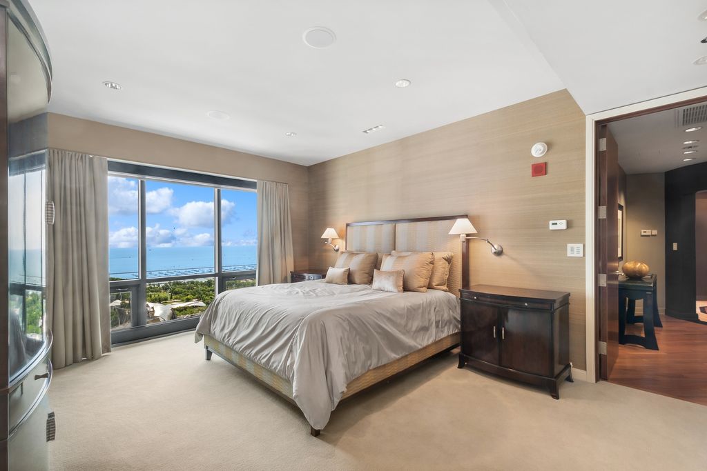 Enjoy spectacular wraparound views of Lake Michigan, Millennium Park and the city skyline from this one-of-a-kind 4,350SF custom designed home, all on one level, at the Heritage At Millennium Park! This home was exquisitely designed with top-of-the-line finishes and the open floor plan is perfect for relaxing at home and entertaining. Inviting rotunda foyer with dome ceiling leads to expansive living and dining areas with sweeping views of Lake Michigan and Millennium Park. Library features a dual-sided gas fireplace with Absolute granite surround and custom cherry built-in wall unit with bookcases. Open, eat-in chef's kitchen has custom cabinetry, Labrador Gold granite countertops and backsplash, high-end appliances (Subzero, Wolf, Miele), Subzero wine refrigerator with two drawers, walk-in pantry and large southeast facing balcony. Expansive den has wet bar area with refrigerator, sink, ample storage and counter-seating which is great for enjoying a movie and entertaining at home. Adjacent study has custom built-in desk-wall unit, storage and 2nd laundry. Spectacular master suite has office, luxury spa marble bath with dual vanity, whirlpool bathtub and separate dual steam shower, walk-in closet, walk-in laundry room with new Bosch washer-dryer and beautiful east views. 2nd bedroom has en-suite bathroom with oversized full-height marble shower. 3rd bedroom has corner windows, private west facing balcony and gorgeous day and sunset views of the city. 3rd bathroom has marble tile and oversized full height shower. Foyer coat closet and unique designer decorated powder room. Special features o this home include floor-to-ceiling windows, fully integrated Lutron lights, motorized shades and Crestron sound video system, surround sound, recessed lighting, 3 entrances and 2 humidifiers. Well managed, full amenity building with 24hr doorman, on-site management, concierge service, indoor pool with hot tub, steam sauna, 3 outdoor terraces, exercise room, party-conference room, receiving room, dry cleaner, dog run, storage, bike storage, direct access to the Pedway, and more! Walk to the lakefront, Millennium Park, Cultural Center, restaurants, theaters, symphony, shopping, museums, transportation and more! 1 deeded parking space 5-36 available at $35,000. 2 full-height storage lockers included.