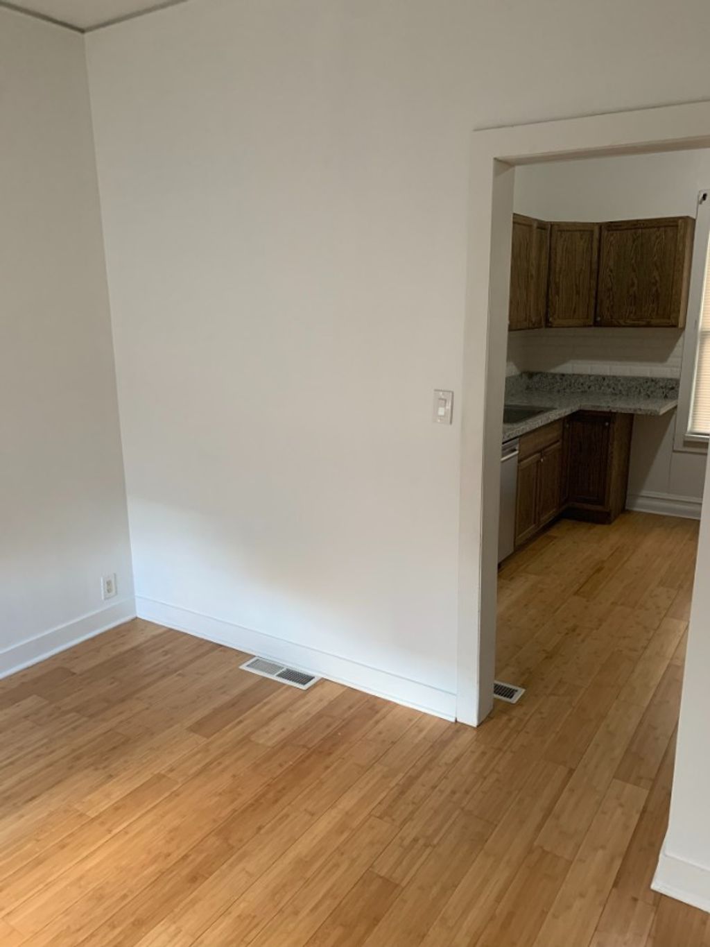 Great single-family home for rent. One bedroom downstairs and two bedrooms upstairs (dormer) with a full bath on each level. A large enclosed front porch provides extra living space, and the property features a spacious fenced front yard. Pets welcome. Stainless steel and granite in the kitchen. Lots of space! New siding and sills to be painted in front.