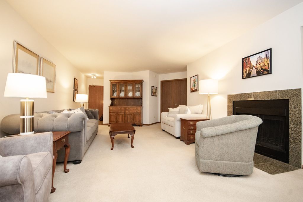 Largest model one bedroom in subdivision. Walk in to your granite tiles foyer to see the bright sunny open concept living room large enough for plenty of furniture and boasts a wood burning fireplace. The master bedroom has a beautiful bay window and immense walk in closet. There is a separate dining room with updated chandelier and sliding door to access the patio for morning coffee. Generous sized eat in kitchen with stainless steel appliances, granite countertops, backsplash and floors, breakfast bar, pantry, laundry/utility space. Storage unit is accessed from main hall entry inside the building. Updates: Climate Guard Windows/Slider 2019, Bosch Stacking Washer/Dryer 2020, GE Dishwasher 2021, Badger Insinkerator Garbage Disposal, AO Smith Electric 50 gal Water Heater, Zephyr Range Hood 2022. Close to expressway, entertainment, parks, shopping, dining and so much more! Walk way has three small half steps up to the front door. Come see this unit, it could be the next place you call home!