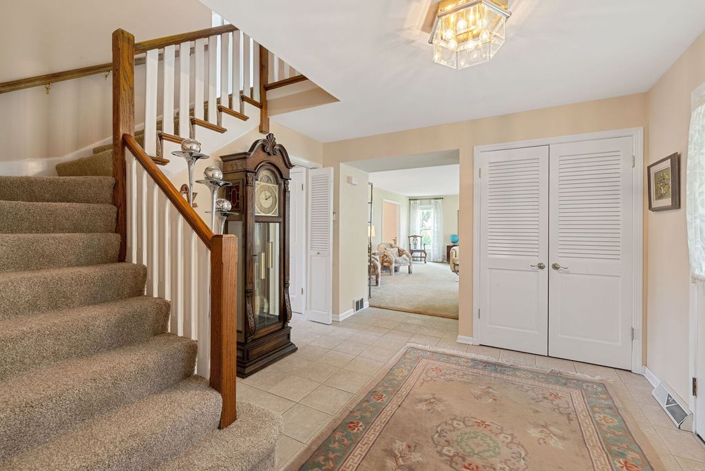 ***Great new price and such an excellent value*** Gracious colonial is nestled on a cul-de-sac lot in sought after Charlemagne! Greet your guests in the spacious foyer. Entertainment size living room and dining room with loads of windows. The sunny kitchen is well appointed with plenty of maple cabinets, corian counters, tumbled stone backsplash, Grohe faucet, and porcelain tile floor. The grand family room is the perfect place to relax with charming fireplace and sliders to the patio for grilling or easy indoor/outdoor entertaining. Upstairs you will be delighted by the lovely primary suite! En-suite bath boasts double vanity, spa like shower and walk-in-closet! Additional three large family bedrooms wtih great closet space served by the updated hall bath featuring a double vanity. New neutral carpet flows through the upstairs level. **Special feature** there is Hardwood under all carpet throughout the home! Huge basement is perfect storage or awaiting your finishing touches. Side load attached garage and additional parking apron. So many recent updates and improvements include: Architectural shingle roof 2014, 2nd floor carpet 2024, family room carpet 2022, refrigerator 2023, sump pump with battery backup 2021, Bosch dishwasher 2019, washer/dryer 2018, Furnace and A/C 2013, Windows/sliders, siding and gutters 2002! Enjoy your outdoor space and the beautiful professional landscaping from the charming front porch or the rear patio! District 27 schools and Glenbrook North High School! Close to metra, restaurants, shops and all the wonderful Northbrook parks and recreation facilities!