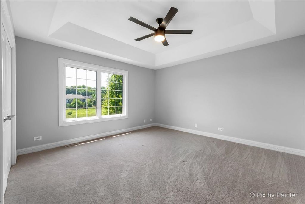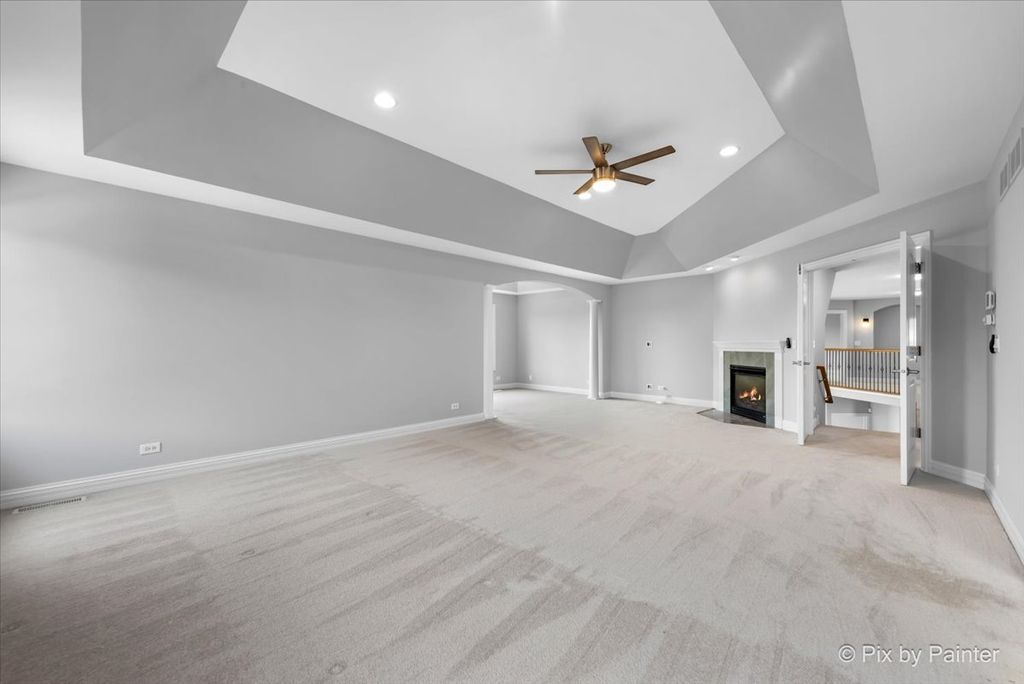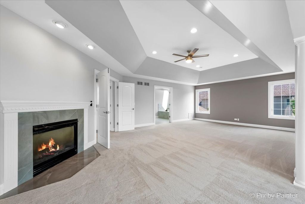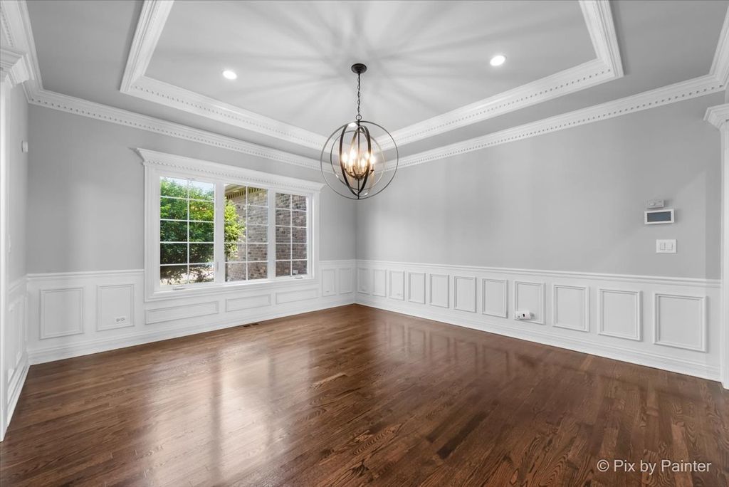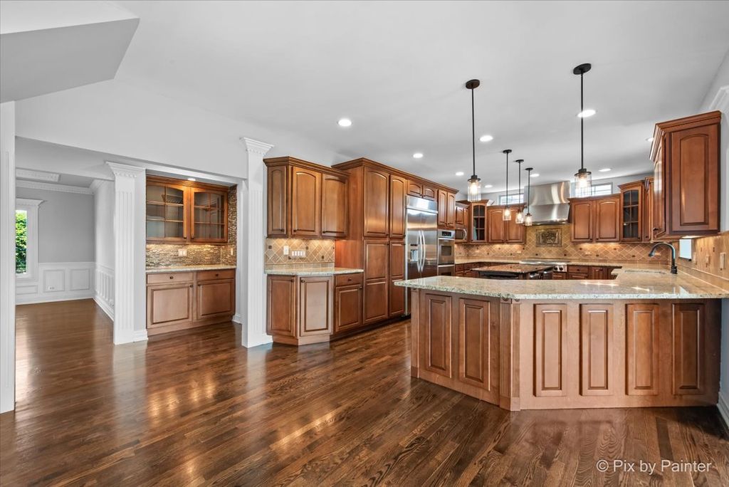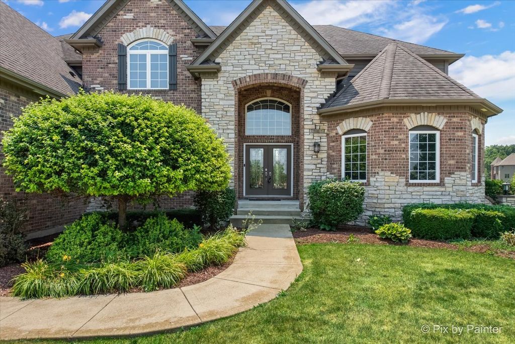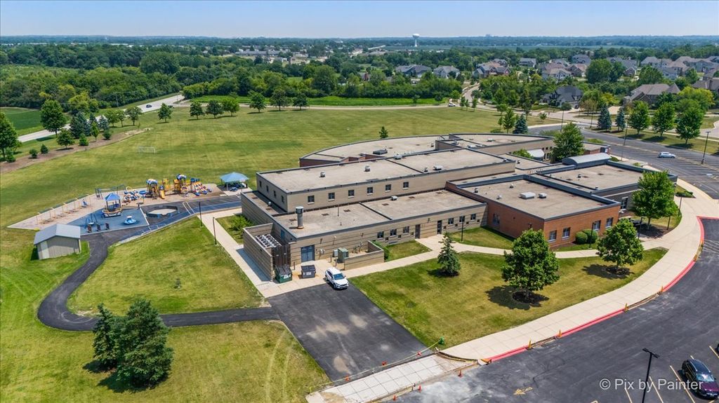 First Impressions Matter-and This Home Delivers. Step into a grand two-story foyer that sets the tone for the expansive interior. It opens to a soaring two-story family room centered around an intricately detailed fireplace surround, creating an unforgettable focal point. The formal dining room features elegant wainscoting, a coffered ceiling with extensive trim work, and a modern light fixture-perfect for hosting fun parties. A spacious living room with a charming bay window offers a versatile additional space. An oversized first-floor office / den / bedroom includes a large walk-in closet and is conveniently located next to a full bath, making it ideal for guests or working from home. A dual "T" staircase-with iron spindles-leads you either upstairs from the kitchen or foyer, enhancing flow and functionality. A Kitchen Designed to Be the Heart of the Home. The kitchen anchors the main level with a bright eating area that overlooks the open backyard. Explore your inner 3 star cooking with upper end appliances. Double oven, SS Frig. and 2 beverage refrigerators makes for easy cooking. Just off the kitchen, the sunroom (or Florida room) features skylights and a vaulted ceiling, bringing in natural light and offering a perfect retreat. You'll also love the oversized laundry/mudroom-over 20 feet long-with abundant storage and a side entry door. Upstairs Comforts and Conveniences await. The primary suite is generously OVER-sized, with a tray ceiling, cozy fireplace, and a spacious sitting area. The walk-in closet is impressive-not only in size but in function, with a second laundry unit for ultimate convenience. The en-suite bath has been tastefully updated with a double vanity and oversized walk-in shower. Three additional bedrooms complete the second level-one with a private bath and the other two sharing a Jack-and-Jill bath. The Possibilities for enjoyment continue in the Basement. The English-style basement with extra tall ceiling, is full of potential. Offering natural light and a rough-in for a future bathroom, making it easy to finish to your taste. Outdoor Living and Ideal Location await. Step out onto the expansive deck that overlooks open space-offering privacy and tranquility. The home is located directly across the street from the local grade school, this home truly has it all: space, function, beauty, and location. Easy to show! Updates in the home: The hot water heaters were done in 2020 and 2022. The home has been newly updated to included, repainting of the home, extensive update to the baths upstairs, tops, new plumbing and lights and cab and tiles as well as newer light fixtures in home. Hardwood floor was refinished. ** Fences are allowed we're told by the HOA