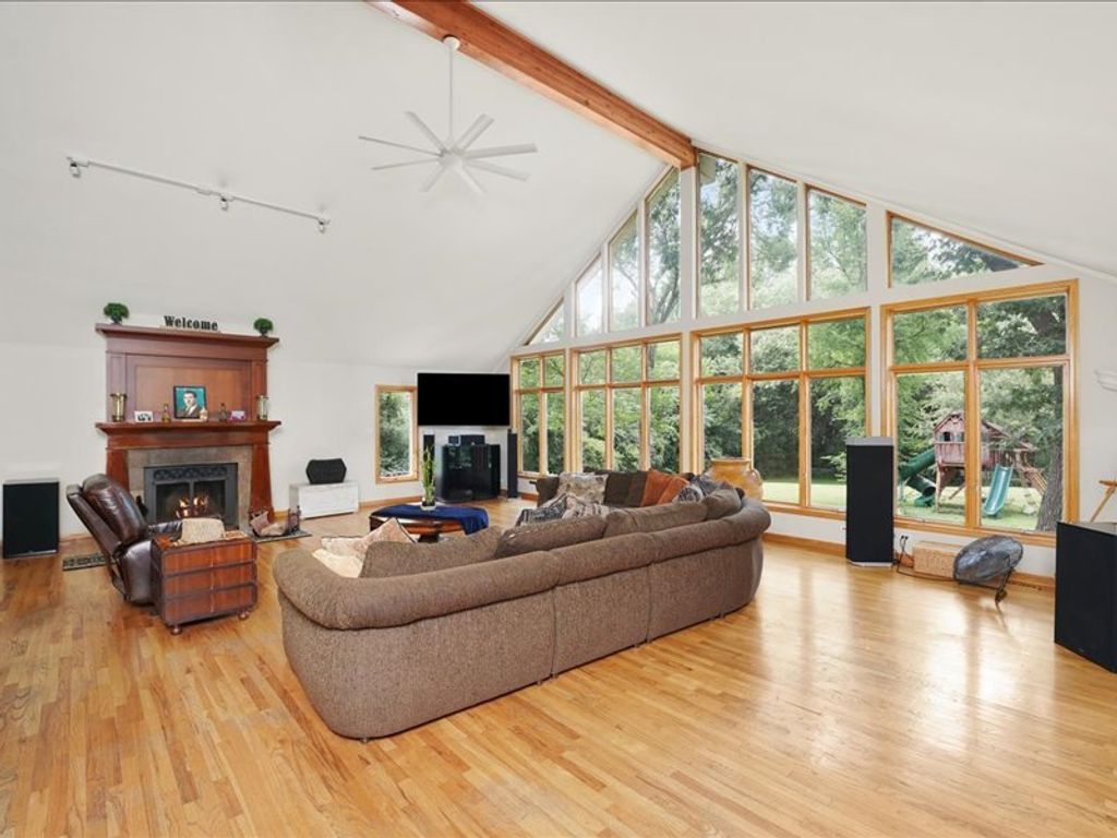 Experience the perfect blend of privacy and space in scenic Palos Park. Nestled on 1.1 acres of land, this expansive 4-bedroom, 2.5-bath home offers unmatched indoor-outdoor living with a park-like backyard and over 4,000 square feet of finished living space. Kitchen and dining area seamlessly open to an extraordinary family room with vaulted ceilings and a full wall of windows. Step outside to enjoy a massive wraparound deck, perfect for summer gatherings. The oversized 3-car garage, long private driveway, and solar panel system add convenience and value. Don't miss out!