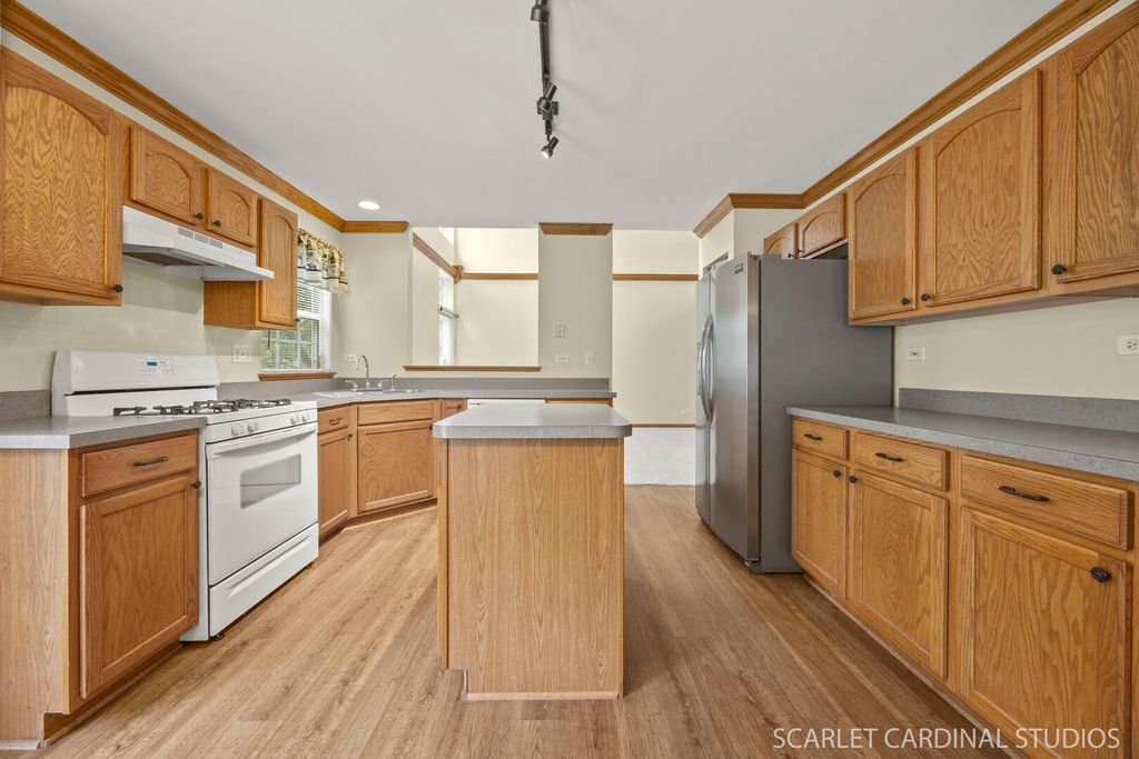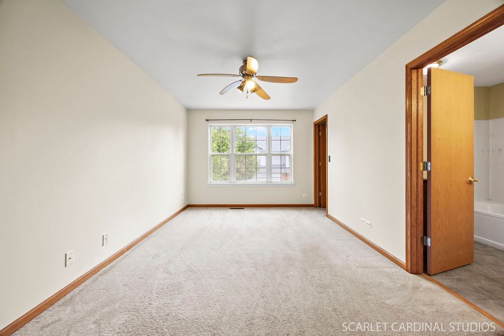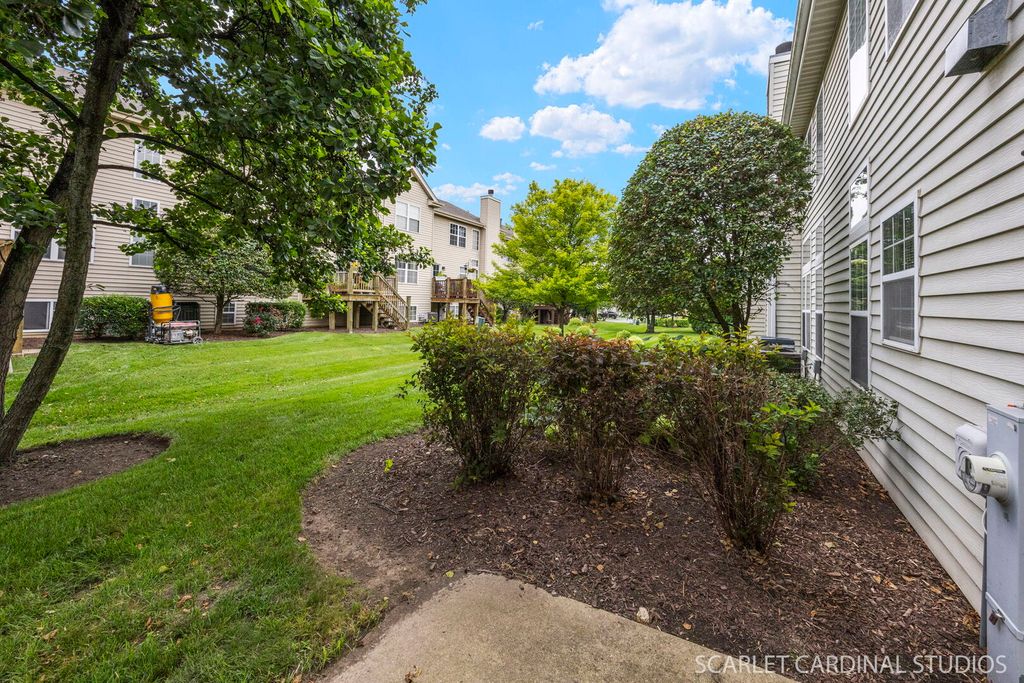 Enjoy maintenance-free living in this refreshed 2-bedroom, 2.1-bath townhome situated steps from nearby Ginger Woods Park and the Illinois Prairie Path. This home features attached two-car garage, and a covered front porch which welcomes you inside to a spacious foyer with a large coat closet. The bright two-story living room boasts soaring ceilings, oversized windows, and extensive crown moldings. The fully equipped kitchen includes an island, closet pantry, and adjacent dining area with sliding glass doors to the patio. Just off the kitchen is garage access, flanked by two large storage closets. A main-level powder room adds convenience. Upstairs, the generous primary suite features a large walk-in closet and a private en-suite bath. The second bedroom also includes a sizable closet and easy access to the second full bath. A versatile loft overlooks the living room-perfect for a home office, playroom, or family room. You'll also appreciate the convenience of the upstairs laundry room situated between the two bedrooms. Additional highlights include fresh paint throughout - 2025, brand-new carpeting on 1st level - 2025, and a dedicated mechanical/storage closet in the garage. Located in the desirable Parkside at Countryside community, you'll enjoy scenic walking and biking trails, parks, and tranquil ponds. Just minutes from I-88, the Chicago Premium Outlet Mall, and numerous shopping and dining options. All of this within the highly rated Naperville School District 204, including Brooks Elementary, Granger Middle School, and Metea Valley High School. This is one you won't want to miss!