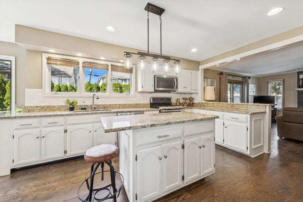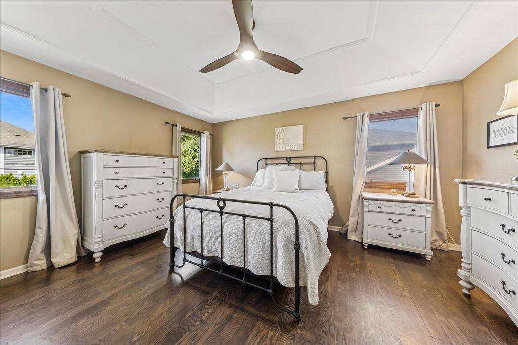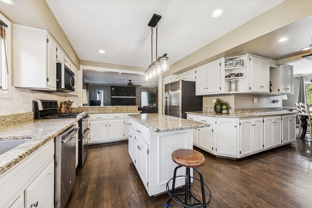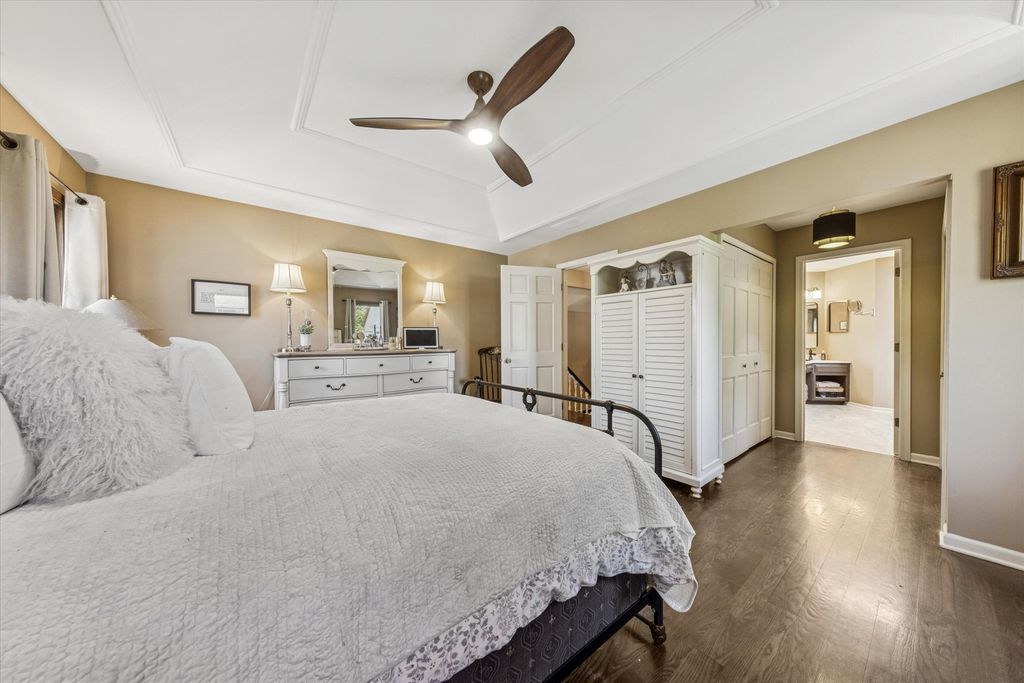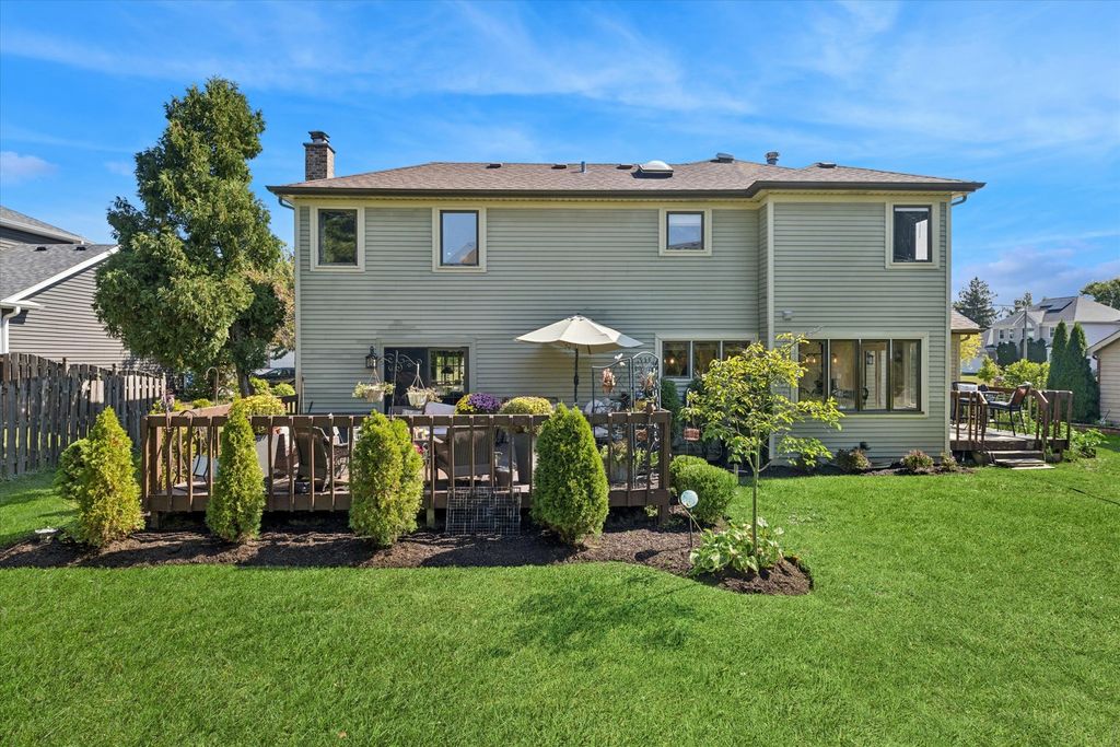 Custom home in desirable Arbor Ridge subdivision boasts open floor plan. Unique layout w/large, eat-in kitchen has white cabinets, granite counter tops & stainless steel appliances. Family room w/brick fireplace is open to formal living room w/cathedral ceiling. Separate, formal dining room is open to kitchen w/butler's pantry. Upstairs the primary suite w/trayed ceiling has dual closets, private bath w/dual vanities + separate tub & shower. Good sized bedrooms share hall bath w/dual vanity. Newer hardwood flooring throughout 1st floor. Full, finished basement w/new carpet has theater area w/projector & 130" screen + bathroom rough-in & plenty of storage. 1st floor laundry/mud room w/access to oversized, heated 2.5 car garage w/rear bump out for add'l storage & 220v electric for EV car charger. Private yard features extensive landscaping & two decks. Lisle District 202 schools. Great location, convenient to everything including shopping, dining, highways & downtown Lisle.