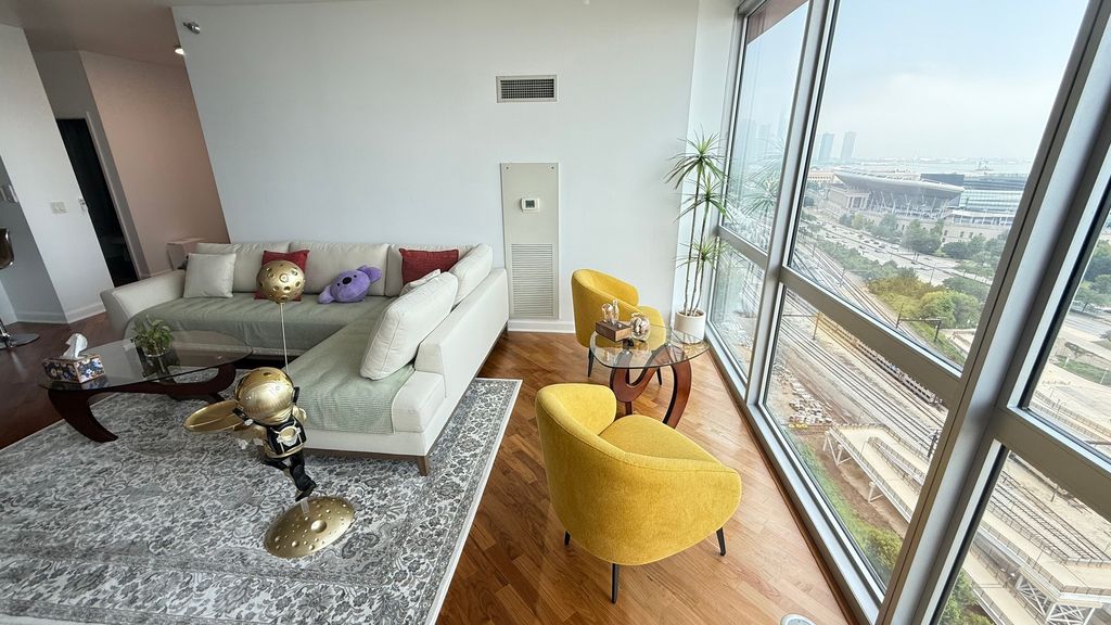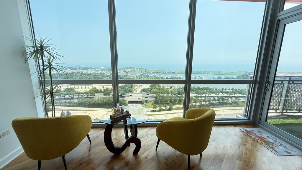 Situated in the popular Museum Park Place building within the heart of the South Loop's Prairie District, this newer 2-bedroom + den, 2-bath residence on a high floor offers a compelling blend of style and functionality. Expect to be impressed with the sought-after floor plan and east facing, floor-to-ceiling windows which provide breathtaking views of the lake and city. The well-maintained kitchen boasts 42" glazed, maple cabinetry with glass fronts, granite counters, and stainless steel appliances. The serene master suite features organized walk-in closets and a spa-like stone bathroom with a double vanity and an oversized shower. Additional highlights of the home include ample dining space, a separate den perfect for remote work, hardwood floors, and convenient in-unit laundry. Step outside to the east-facing terrace or make use of the additional storage provided. Deeded garage parking is available for an extra . Enjoy a range of building amenities, including a doorman, fitness center, bike room, dog run, sauna, rooftop pool and deck, and a renovated party room-all offering some of the city's most stunning views. This prime South Loop location provides a quiet location with easy access to transportation, retail, nightlife, the lake, Soldier's Field, Northerly Island, Burnham Harbor, and more. Pet friendly!