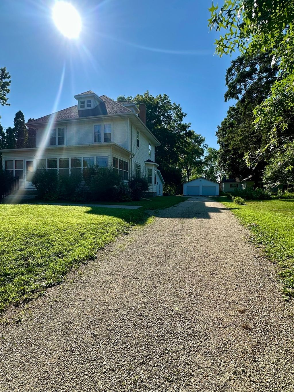 Charming 1920s Home on 1 Acre - Full of Character & Space! Step into this well-maintained 2,488 sq ft home that blends historic charm with modern updates. Featuring 4 bedrooms with potential for a 5th or even 6th bedroom, this spacious home offers custom woodwork throughout, including beautiful built-in bookcases, 2 pocket doors, a coat closet with boot box, and a stunning built-in buffet. Enjoy the flexibility of an additional upstairs kitchen, a full basement with a mudroom addition, and laundry conveniently located in the main-level half bath. Radiant boiler was replaced in 2016, and the basement has a roughed in 3rd bathroom. Home was sided in 2002, with the roof updated in 2012. The detached two-car garage received a new metal roof in 2020. 2 Additional outbuildings provide excellent storage and workspace options. Situated on the edge of a quiet, friendly town, this home sits on a full acre, offering room to stretch out while still being close to amenities. Some newer plumbing and electrical. An excellent opportunity for anyone looking for space, character, and small-town living!
