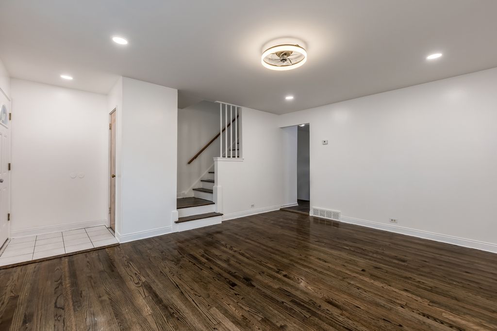 Charming townhome in Albany Park featuring about 1500 sqft of living space 2 spacious bedrooms and 1.5 bathrooms. Step inside the living room to find beautifully refinished hardwood floors and modern can lights along with new fixtures that enhance the inviting atmosphere. The spacious kitchen boasts ample cabinetry and counters and room for a dining table, ideal for everyday meals. Upstairs, you'll discover 2 generous bedrooms, including a master with a walk-in closet, and a fully remodeled bathroom. The finished basement offers versatile living space, perfect as a family room or potential third bedroom. The basement also includes a large laundry area for added convenience. The unit comes with one parking space and a fenced front yard, providing privacy and outdoor enjoyment. Conveniently located near bus stops, schools, universities, parks, banks, and everyday amenities, this home offers comfort, style, and easy access to everything you need. No hoa fees and low taxes makes this a great investment property.