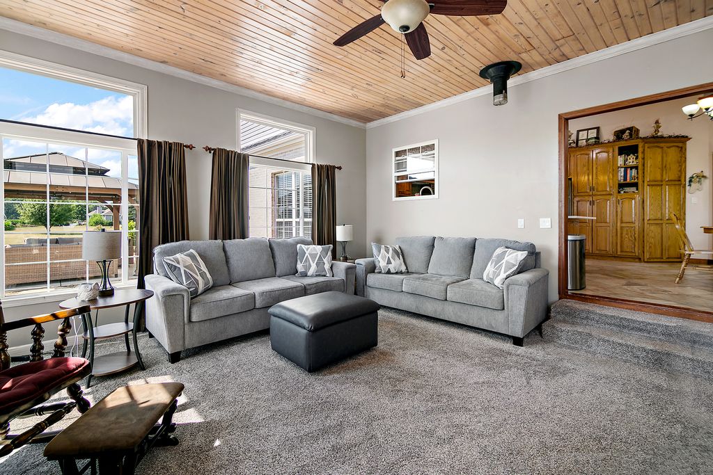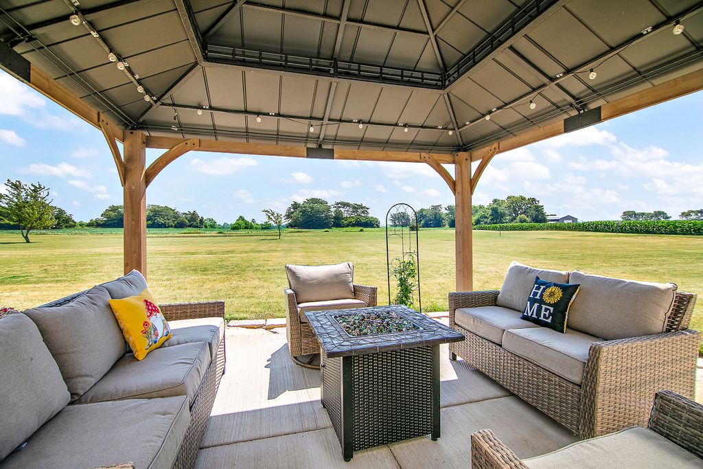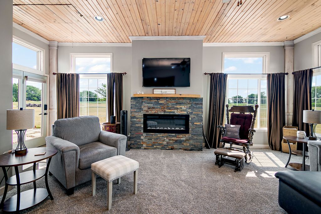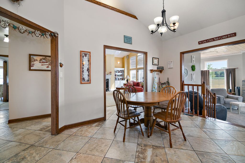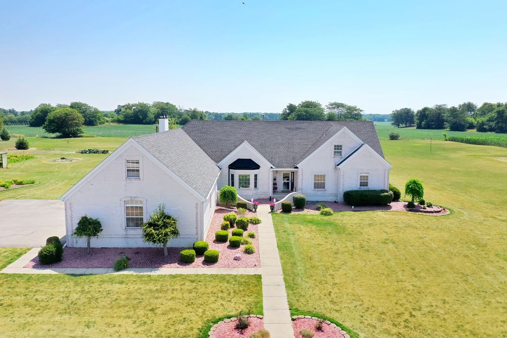 Welcome to this exceptional 5-acre estate located in the highly desirable Limestone Township! This custom-built, 2-story home offers 6 spacious bedrooms, 4 full bathrooms, & 2 half baths, all set against a stunning, landscaped backdrop! With over 4,700 square feet of living space, the home features soaring cathedral ceilings throughout & an expansive floor plan designed for both comfort & elegance! As you enter, a grand foyer welcomes you with a sweeping staircase leading to the second level. The formal living room, with its vaulted ceilings, flows seamlessly into the kitchen/dining room, providing the perfect setting for entertaining. The family room boasts a cozy wood-burning fireplace & built-in shelves, while a set of French doors leads to a 4-season room that's ideal for year-round enjoyment. With floor-to-ceiling windows, wood plank ceilings, & a new electric fireplace (2019), this sun-drenched space is an absolute retreat! The expansive kitchen is a chef's dream, featuring a large island, stainless steel appliances, skylights, & new quartz countertops (2024), along with a modern glass subway tile backsplash (2024). A dedicated dining area completes the space, making it perfect for family gatherings! The luxurious primary bedroom suite, conveniently located on the main level, is complete with new wood laminate flooring (2019) and barn doors leading to a huge walk-in closet. The remodeled en-suite bathroom (2019) boasts a mid-century dresser as a double vanity, a custom tiled walk-in shower with a waterfall showerhead, a jetted tub, & heat lamps for added comfort. In addition to the main living space, this home offers a related living suite on the main floor with a private galley kitchen, living room, bedroom, and full bathroom-ideal for multi-generational living or guests. The fully finished basement is an entertainer's paradise, featuring a full bar, custom pool table (negotiable), and multiple living spaces including a recreation room for workouts or hobbies, a family room with another wood-burning fireplace, and a full bathroom with a stand-up shower. Key updates & maintenance include roof (2008), updated gutters (2014), new hot water heater (2017), two ac units (2010 & 2015), two newer furnaces (2015 & 2018), ejector pump (2022), nine windows (2014 & 2019), blown in insulation (2014), & exterior doors (2014). Additionally, this home offers a whole-house central vacuum system, a water softener, a reverse osmosis system, and a whole-house surround sound system. Outside, the new flagstone patio (2023) and gazebo provide a perfect spot for relaxation, while the grill hut/gazebo, volleyball area, and lush flower garden with two serene ponds complete the picturesque outdoor space. For those needing additional storage or workspace, the home includes a deep 3.5-car garage with a full office or bonus room above. This incredible property is the perfect blend of luxury, functionality, and nature. Come see it today!