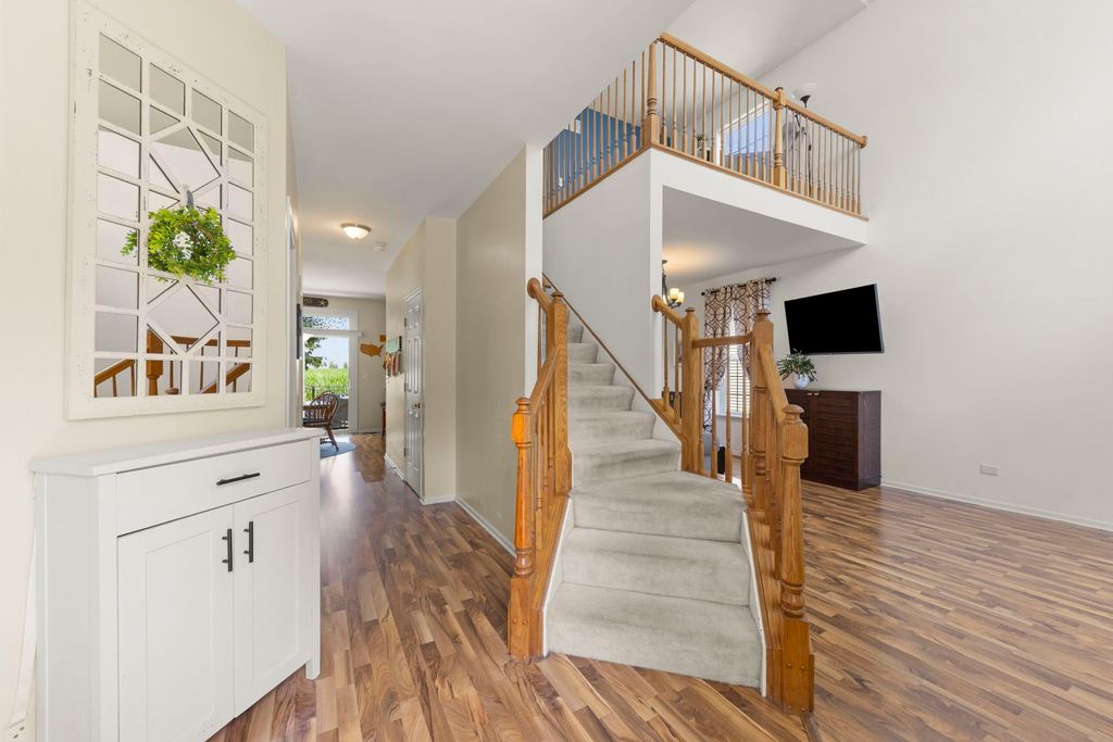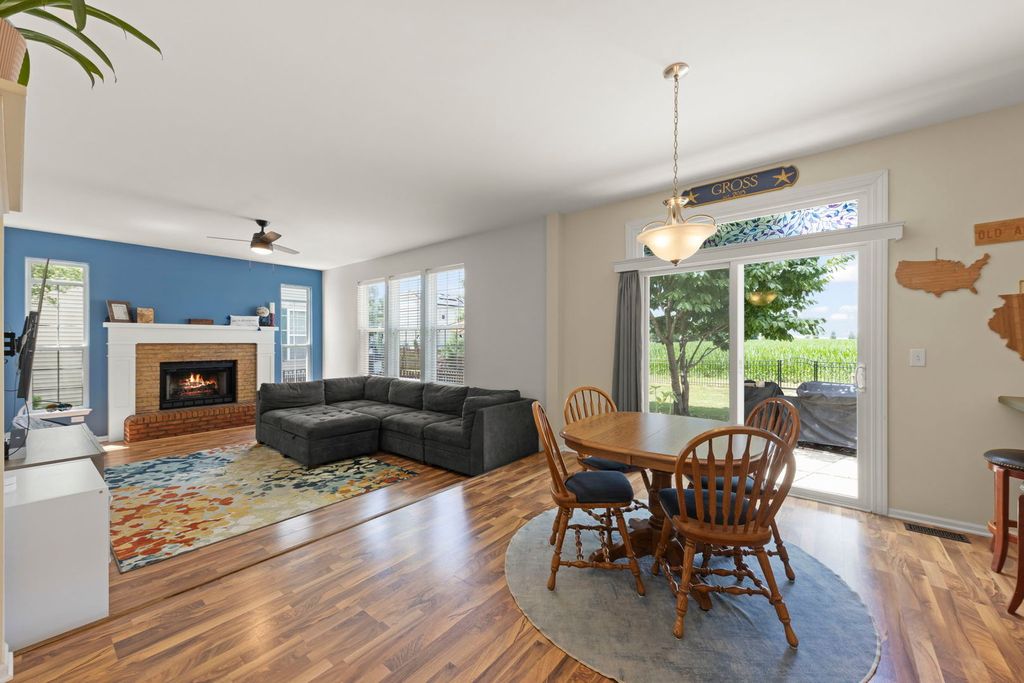 Curb appeal ++ in a pool/clubhouse community! This great home features a dramatic 2-story foyer with curved staircase, opening to the living/dining area. You will love the gorgeous, easy-care luxury plank flooring throughout the 1st floor. The spacious kitchen offers tons of open-top cabinets and counterspace with eating peninsula, walk-in pantry and stainless steel appliances that opens to the eating area that has a sliding door to the patio (check out the beautiful transom window detail!!). The sunken family room offers 9' ceiling with overhead fan/light and raised-hearth brick fireplace flanked by windows for exceptional natural lighting. The 1st floor has a powder bathroom and convenient laundry/mudroom. Upstairs is the loft, perfect for study, office or play. You will love the expansive primary bedroom with HUGE walk-in closet and private bath. The secondary bedrooms feature neutral carpeting and overhead fans with lights and easy access to the hall bath. Full basement is ready for your ideas and includes sump pump with batter back-up and crawlspace for maximum storage. Relax on the sprawling patio overlooking the wrought-iron fully-fenced yard with firepit area and perfectly located shade trees, backing to farmland. The community features pools, sports courts, playground and clubhouse, in the highly-rated Plainfield 202 school district. Love where you live! Don't miss this one!
