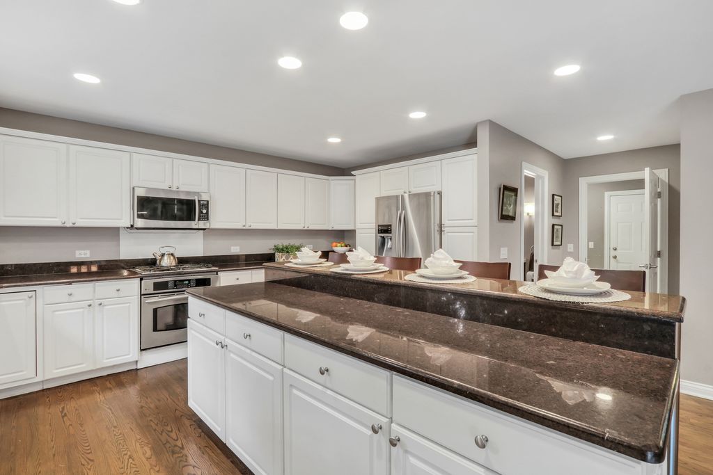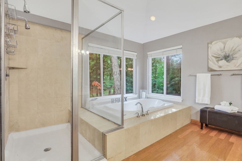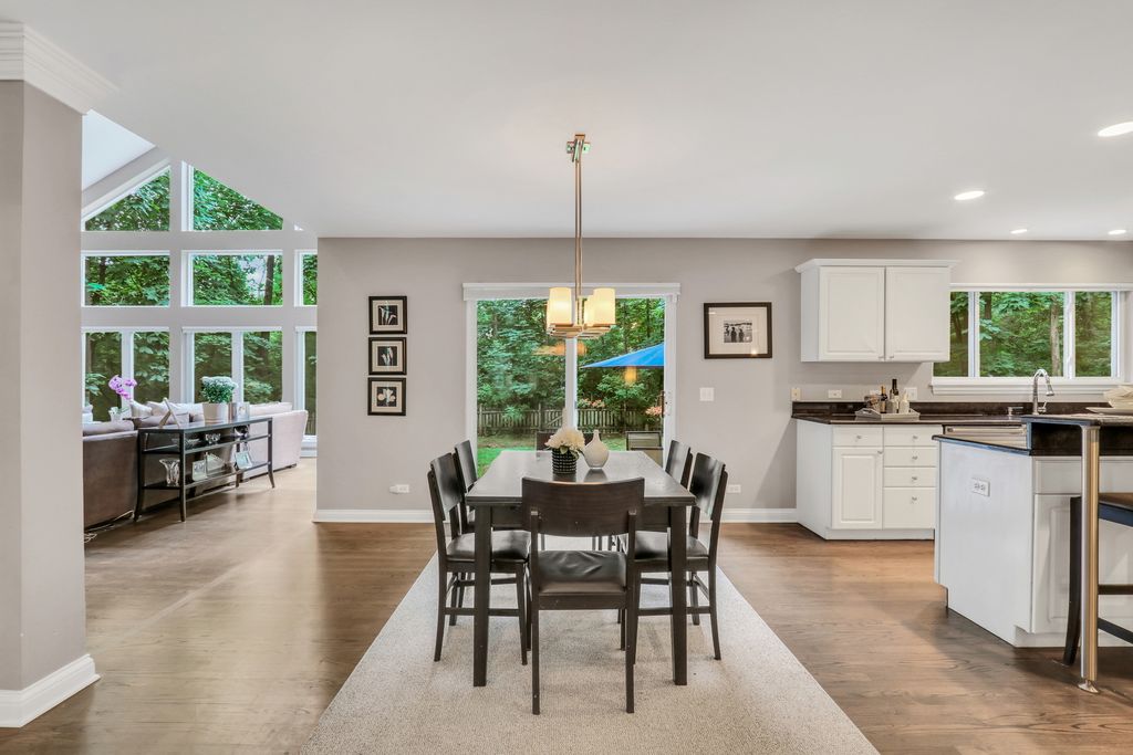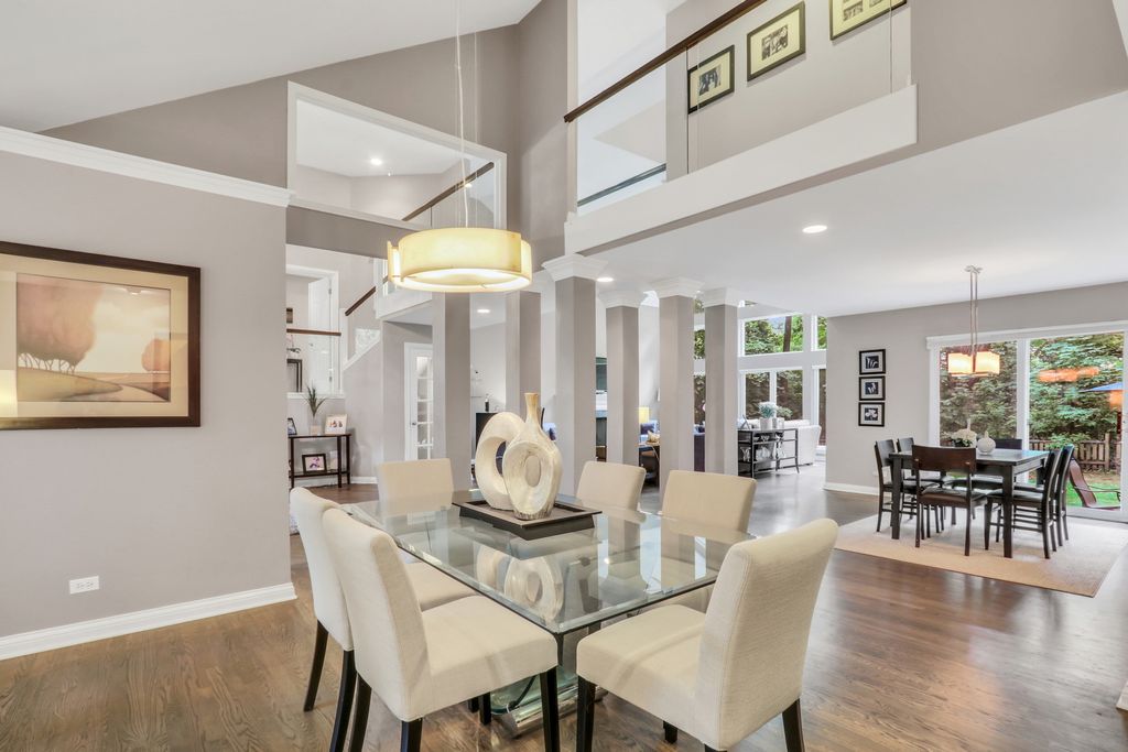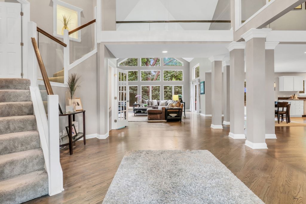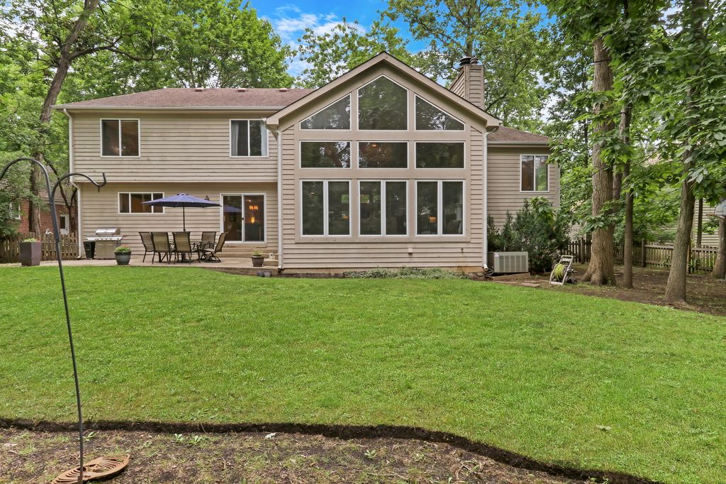 Welcome to Your Dream Home in Bittersweet Woods! Prepare to fall in love the moment you arrive at this absolutely stunning, one-of-a-kind residence nestled in the highly sought-after Bittersweet Woods neighborhood. This gorgeous home offers the perfect blend of elegance, functionality, and warmth-featuring 4 spacious bedrooms, 3.5 beautifully appointed bathrooms, and a thoughtfully designed open floor plan that invites both comfortable everyday living and effortless entertaining. As you pull up, you're instantly greeted by impeccable curb appeal-a lush, manicured lawn, mature trees offering dappled shade, and a stately facade that radiates charm. Step inside to discover gleaming hardwood floors, a soaring two-story foyer, and a show-stopping chandelier that sets a grand and welcoming tone. A beautifully designed see-through staircase banister adds an airy, modern touch while maintaining the home's timeless character. The main living area is a true showpiece-boasting a wall of windows that flood the space with natural light and offer sweeping views of the serene backyard. Whether you're enjoying a quiet evening by the cozy fireplace or hosting a lively gathering, this space is equal parts inviting and impressive. Flowing seamlessly into the formal dining room, you'll find the perfect setting for everything from holiday dinners to everyday meals. The heart of the home is the chef-inspired kitchen, thoughtfully designed with white cabinetry, gleaming granite countertops, stainless steel appliances, and a massive center island with ample seating-ideal for casual breakfasts or catching up over coffee. The adjacent sunlit dining area is framed by more beautiful windows that bring the outdoors in, making every mealtime feel special. Step outside onto the expansive patio and enjoy al fresco dining surrounded by the beauty of your fenced-in backyard oasis. With towering mature trees offering privacy and shade, this space is perfect for barbecues, backyard games, or simply unwinding with a glass of wine as the sun sets. You'll love entertaining out here-or simply enjoying the peaceful escape it offers. Back inside, the main-level mudroom/laundry room is as stylish as it is practical, featuring built-in cabinetry and a conveniently located half bath. Just a few steps up, you'll find the private Primary Suite retreat, occupying its own level for added serenity. Vaulted ceilings and large windows create a light and airy feel, while the luxurious en suite bath offers a double-sink vanity, soaking tub, and glass-enclosed walk-in shower-a true spa-like experience waiting for you at the end of the day. Upstairs, three additional spacious bedrooms share a large, well-appointed full bath, offering room for family, guests, or a home office setup. On the lower level, a large family room provides a fantastic casual living space-perfect for movie nights, playdates, or hanging out with teens. Through elegant French doors, you'll find a flexible bonus room that can easily serve as a fifth bedroom, home office, gym, craft room, or anything your lifestyle demands. The surprises don't stop there-head down to the finished basement, where you'll discover an expansive recreational space ideal for a game room, home theater, or hobby space, along with a full bathroom for added convenience. There's truly a space for everyone and everything in this remarkable home. This is more than a house-it's a lifestyle upgrade. With every detail thoughtfully crafted, and endless space to spread out and enjoy, this exceptional home in Bittersweet Woods is the one you've been waiting for. Welcome home!