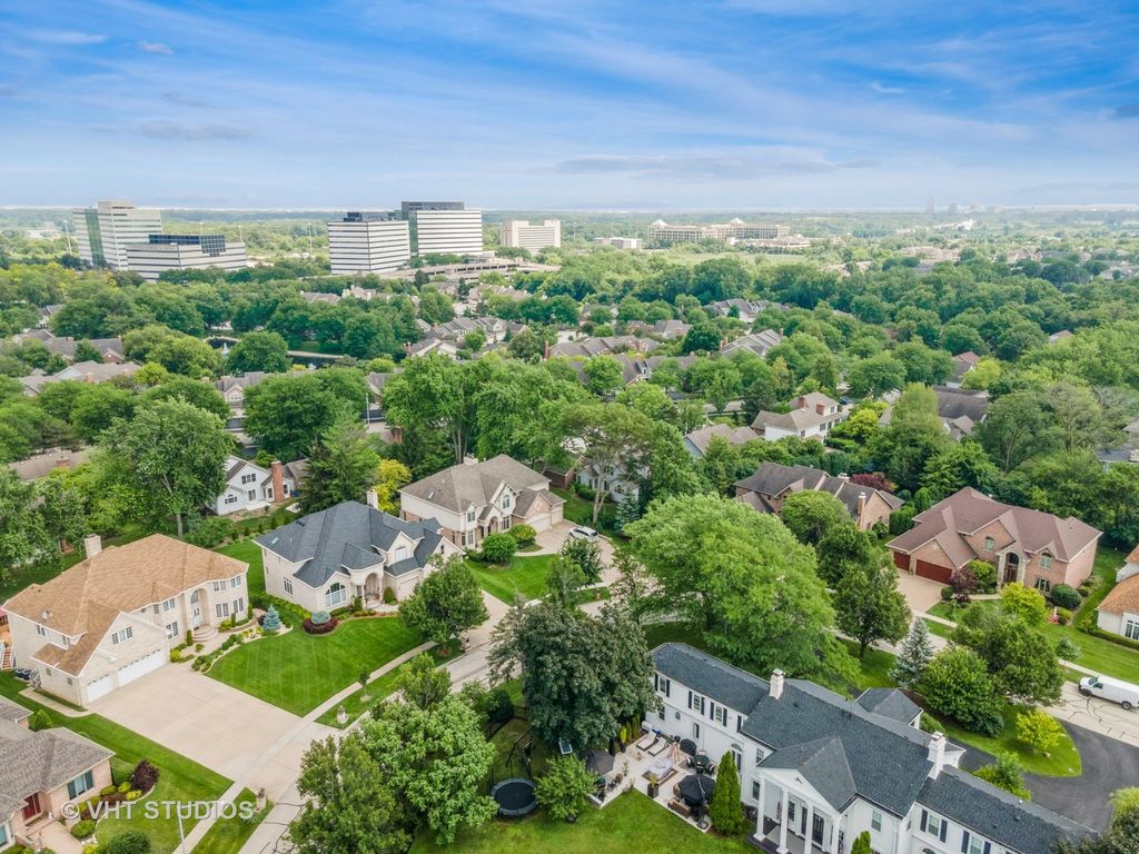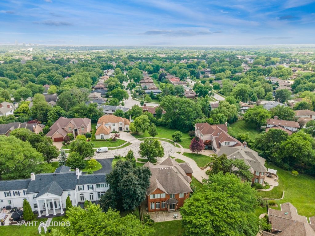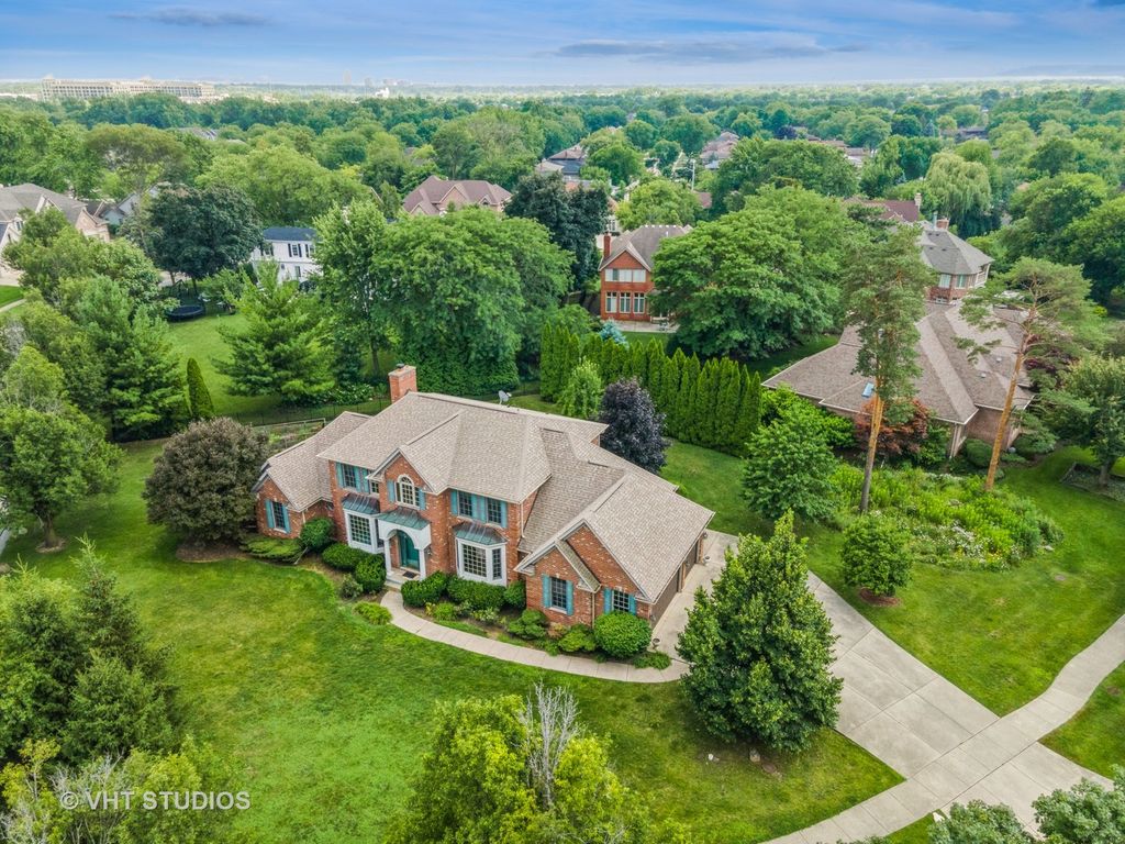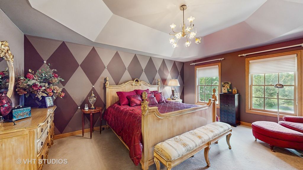 Stately All-Brick Colonial in a Serene Setting! THIS HOME IS TRULY ONE OF A KIND. A rare opportunity to own a custom-built, all-brick Colonial that masterfully blends timeless architecture with refined finishes and artistic design. Set on a professionally landscaped lot in Lexington Fields Estates, this 5-bedroom, 3.5 bath home stuns from first glance with its symmetrical facade, gabled rooflines, copper-tone awnings, and grand arched entry framed by stained-glass windows and decorative columns. Step inside to soaring ceilings, a sweeping staircase, sun-drenched foyer and be awestruck by a custom wall mural by renowned Chicago artist. Throughout the main living spaces, you'll find elegant Venetian plaster walls, adding warmth, texture and depth-bringing a rich, polished finish that elevates every room. The gourmet kitchen seamlessly blends functionality with warmth, offering a thoughtfully designed space ideal for both everyday living and entertaining. At the heart of the kitchen is a spacious central island with a prep sink and gas cooktop- this place is an entertainer's dream! Designed with both style and practicality in mind, the kitchen features custom pull-out pantry drawers and the deep sliding shelves which elevate organization and functionality for the home chef. Additional highlights include an adjacent wine rack and built-in shelving, as well as a dedicated beverage or bar station. The great room centers around a cozy fireplace and opens to a formal living room through French doors-ideal for refined entertaining. A formal dining room is perfectly positioned off the kitchen for holidays and gatherings. The main level in-law suite allows for multi-generational living at its finest. Upstairs, the luxurious primary ensuite exudes comfort and elegance, featuring tray ceilings, a bold diamond-patterned accent wall, plush carpeting and sunlit window. Complementing the suite are two generously sized bedrooms, each with its own walk-in-closet-designed with both comfort and sophistication in mind. Both bathrooms offer a spa-inspired retreat with indulgent Jacuzzi tubs, and sleek walk-in showers. It's a space designed for both relaxation and refined style. A full unfinished basement offers endless potential for additional living space, media room, gym or workshop which is ready to be tailored to your vision. Step outside to discover a true outdoor oasis. The home is surrounded by lush gardens; mature fruit trees and a winding sidewalk path encircles the home. Entertain your family and guests on the concrete patio with fire pit right off the kitchen and great room. Homes with this level of craftsmanship, artistic flair, and luxury detail are rarely available. Don't miss your chance-schedule your private showing today!