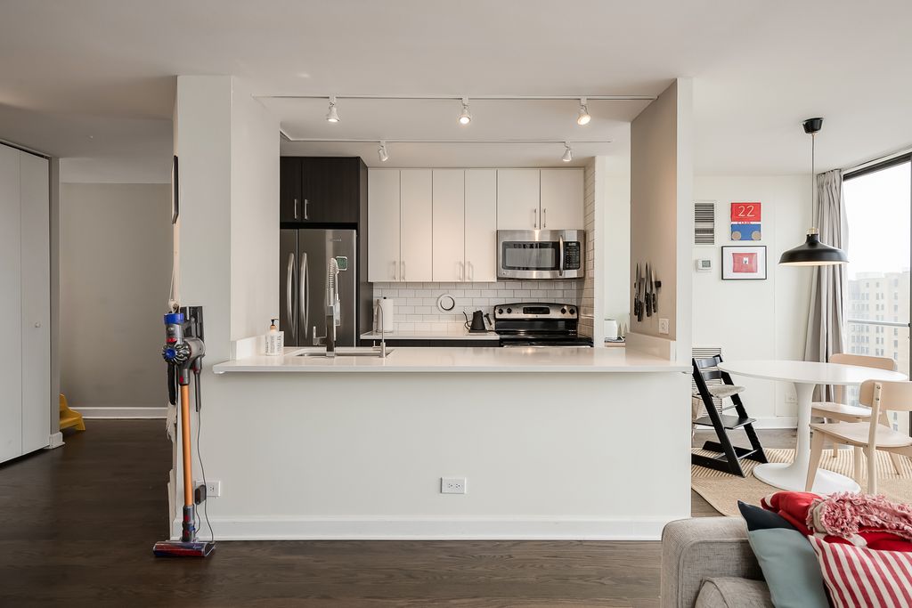 Soak in breathtaking southwest-facing views of the Chicago skyline from this light-filled 2-bedroom, 2-bath corner unit perched high above the city. With floor-to-ceiling windows wrapping the living space, you'll enjoy dazzling cityscapes by day and the glittering lights of downtown by night-all from the comfort of your own home. This thoughtfully designed split-bedroom layout offers both privacy and flow, with a wide open-concept living and dining area perfect for entertaining. The modern kitchen shines with sleek quartz countertops, a stylish breakfast bar, high-end stainless steel appliances, and ample cabinet space for storage and prep. Retreat to the spacious primary suite, complete with a custom walk-in closet and a beautifully updated en suite bath. The second bedroom comfortably fits a queen-sized bed, making it ideal for guests, a home office, or both. Hardwood floors run throughout, adding warmth and cohesion to the space. Located in a highly desired, professionally managed building, residents enjoy 24-hour door staff, a fitness center, and a sun deck. Garage parking is available with options for valet or self-park. Nestled directly across from Lincoln Park, you're just steps from the zoo, lakefront trails, and vibrant Clark Street, offering endless dining, shopping, and entertainment. Convenient access to Lake Shore Drive and public transit makes commuting a breeze.
