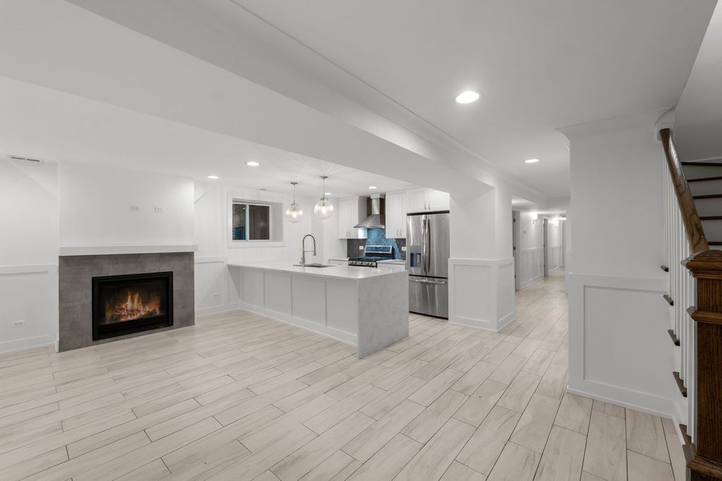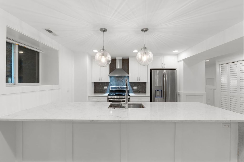 Fully renovated apartment on a quiet tree lined street in the heart of Hyde Park. Nestled in a classic brick and limestone building on an oversized lot, this home was completely reimagined with a focus on flow, light, and luxury. This gorgeous 3BR 2BTH unit has 8 ft ceilings throughout & huge private outdoor patio! A private entrance leads to a spectacular living space with a stunning gas fireplace. The living spaces open to the chef's kitchen which features white shaker cabinetry with crown molding, waterfall quartz counters, chef-grade stainless steel appliances: exhaust, French door refrigerator, range, dishwasher, and microwave - ideal for entertaining or everyday elegance. The adjacent dining room doubles perfectly as a formal space or additional multipurpose living space. The primary suite offers a custom walk-in closet and a spa-inspired bath, complete with a multi-jet walk-in shower and rainfall showerhead. In addition, there is one garage parking spot, in-unit laundry, pet-friendly building, and a recently renovated shared backyard round out this delightful home. Close to locations from all that we love in Hyde Park, 53rd St Commercial Corridor, Butternut Park, University of Chicago, the Lab School, Whole Foods, Trader Joe's, Metra and CTA. This is modern Hyde Park living-elevated.