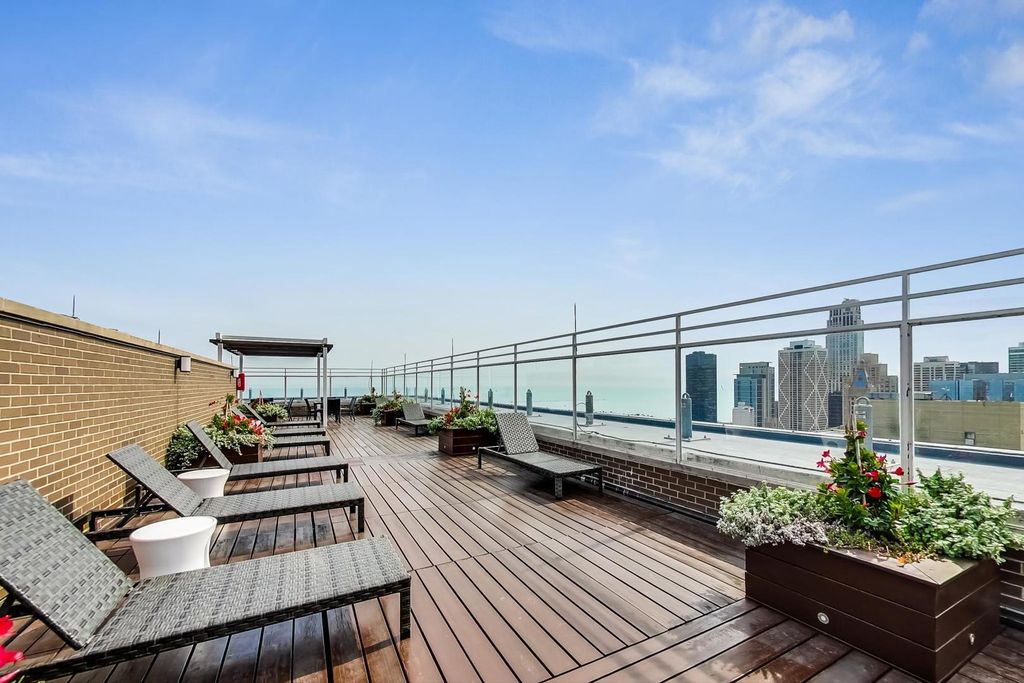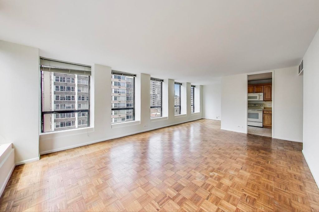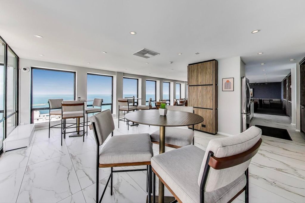 Perched on a high floor, this bright and airy southwest corner one-bedroom residence offers sweeping views of Water Tower Plaza and is bathed in natural light from sunrise to sunset. Warm hardwood floors extend throughout the generously sized living and dining area, creating an inviting space perfect for both relaxing and entertaining. The thoughtfully designed kitchen is appointed with solid-surface countertops and timeless maple cabinetry, blending style and function for everyday living. The expansive bedroom comfortably accommodates a king-size bed and features an entire wall of closets, while additional storage is conveniently located in both the hallway and bathroom. The classic bath includes a spacious vanity and a tub/shower combination-ideal for unwinding at the end of the day. Residents enjoy full-service amenities, including a fitness center, outdoor pool, and a stylish party room, perfect for socializing or relaxing in the heart of the city. Unbeatable location-just steps from the lakefront, Oak Street Beach, the Mag Mile, and Northwestern Hospital. Everything you need is right at your doorstep.
