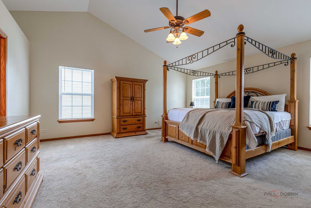 BUYER FELL THRU 2 Days before closing!!!FHA Appraisal on file above asking price!!!IMMEDIATE OCCUPANCY! You won't want to miss out on owning this well cared for, one owner loved Northwood Trails home! This community has one of the most beautiful common areas for all to enjoy. Pristine entry with gorgeous landscaping, Gazebos and ponds make your daily walk even more enjoyable! One of the best floor plans built, this home offers three full floors of living for your family to enjoy! Beautiful foyer with hardwood flooring welcomes your guests. For the at home executive, the first floor den has leaded French glass doors and plenty of sunlight! Formal living room is adjacent to huge family room with soaring ceilings and tons of natural light all complimented by brick fireplace with gas log lighter. Open eat in kitchen with hardwood flooring has an abundance of cabinetry, counter space, pantry & center island to make cooking a breeze! Formal dining room has beautiful trayed ceiling and is placed conveniently near kitchen. Dramatic carpeted staircase leads to spacious bedrooms, hall bath, and huge primary suite with vaulted ceiling, plant ledge, custom designed walk in closet, and convenient primary bath with soaker tub! The finished basement adds even more for you to enjoy with an additional flex room with French doors that can be a potential fifth bedroom, second office, game or crafter room! Equally impressive is the aggregate walkway, porch, and rear patio to spend relaxing at the end of the day or enjoying your morning coffee! Storage shed is ideal for keeping yard tools, too! Seller has maintained the home extremely well! 2025 New Anderson Storm door, 2025 New basement carpeting, 2024 New Sump with battery back up system, 2024 New Garage door track & opener with internet capability, 2023 New driveway, 2022 New Roof, 2022 New Stainless refrigerator, 2022 New paint & carpet, 2022 Newly refinished hardwood floors, 2018 New Trane Furnace & A/C, 2018 New stainless dishwasher. This home also features CAT5 networking! Quick closing is no problem SSA of 235.36 included in tax bill is for Lake Michigan water. No buyer love letters, please. Approval letter of POF must accompany all offers. Thank you!