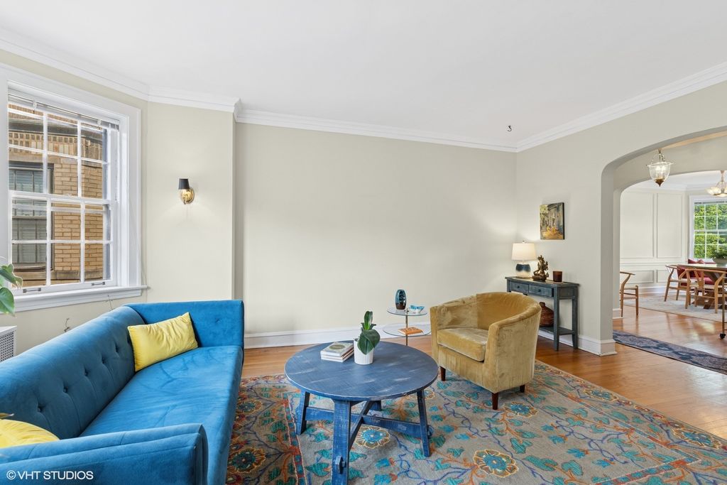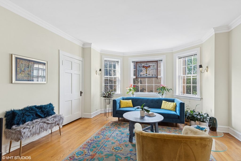 Now's your chance to have it all with this rare opportunity to own an enormous 1,100 square foot 1BR, 1BA condo in one of Evanston's most unique and historic beautifully maintained landmarked buildings, with a peaceful shared outdoor space side courtyard. Bright views from and natural light in every room of this spacious vintage unit with beautifully updated kitchen containing high end (La Cornue range, Miele dishwasher) appliances. Large formal living room, dining room (both with bay windows), and bedroom. Beautiful hardwood floors throughout. Many functional closets and first floor storage locker. Coin laundry on first floor. Parking available (public outdoor or private indoor) close by with a monthly fee. Please note this is a third floor walk-up.
