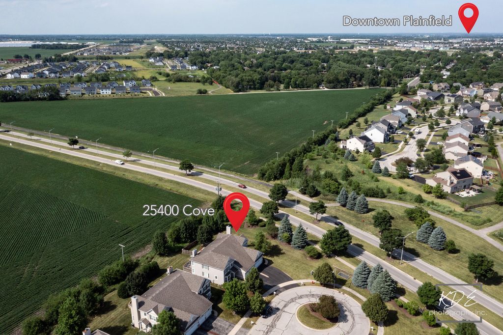 Fantastic END Unit on a cul-de-sac, 3 bed, 2.1 bath, full basement, 1972 Square Feet plus the Basement! Beautiful private yard with sunset views from your large patio....Not your typical townhouse backyard and patio. You can even fence the yard(2 sides already fenced)! Lovely Family Room has wood burning fireplace with gas starter. Spacious Kitchen with NEW quartz counters and an Island with seating. Generous Eating Area with extra cabinets and built in serving counter/buffet, overlooking the patio. Formal Dining Room(Being used as an office now), Powder Room and Laundry Room round out the main level. Second story has three bedrooms and two full baths. Primary Suite has vaulted ceiling, walk in closet, ensuite bathroom with double sinks, soaking tub, separate shower. Finished Basement has three Bonus Rooms/Flex Space for Guests, Entertaining and a large Closet for extra storage. Close to Springbank Aquatic Center, Downtown Plainfield, restaurants, shops, recreation paths. Plainfield North HS. LOW HOA includes snow removal & lawn care. Lots of NEWS: Quartz counters/Sink/Disposal/Kitchen Plumbing 2025, Furnace 2024, Water Heater 2020, Dishwasher/Washer/Dryer new in last 2 years, all new toilets in 2024.