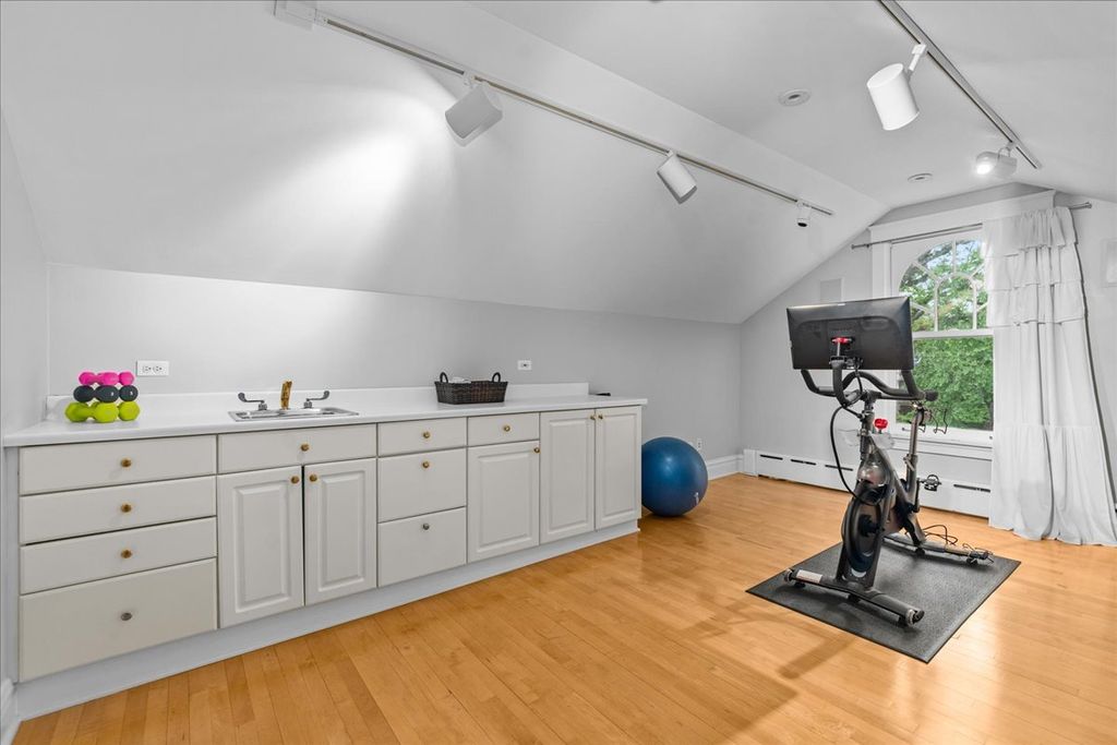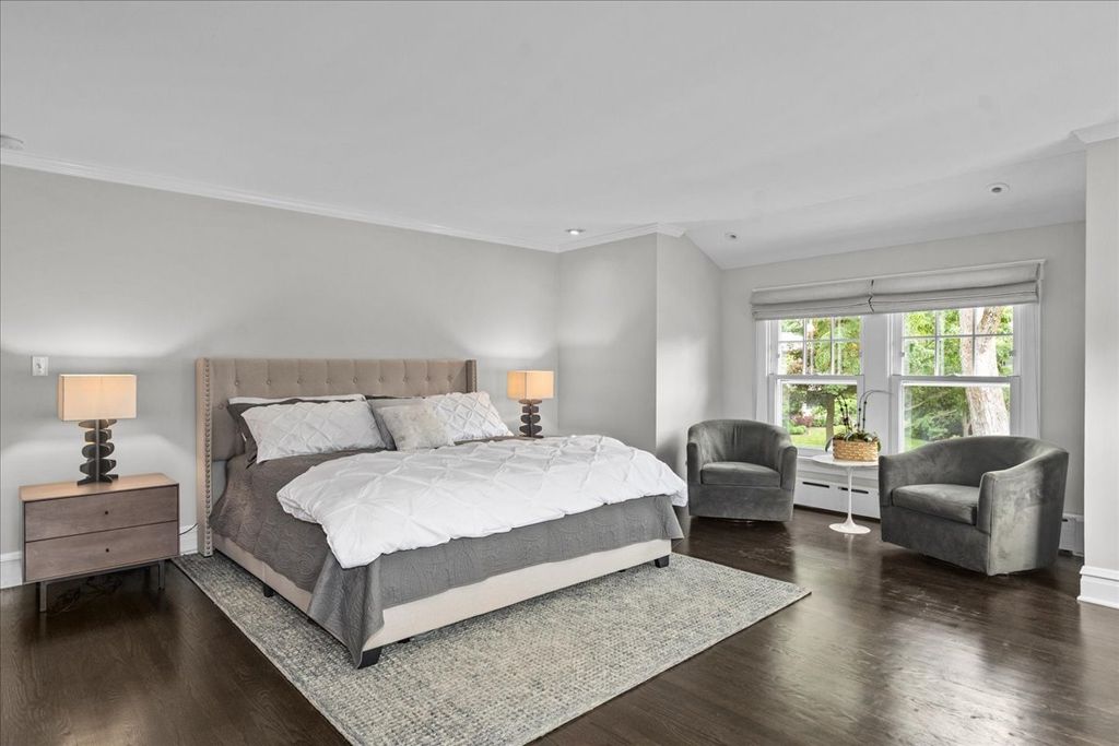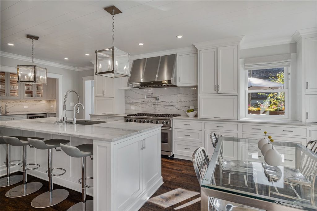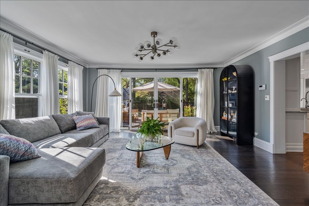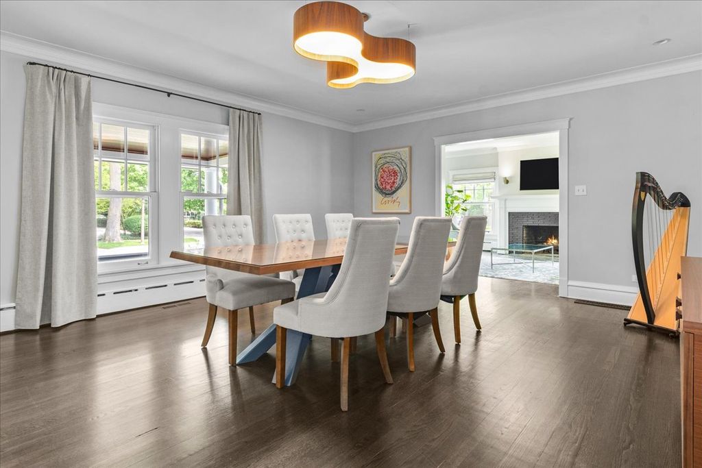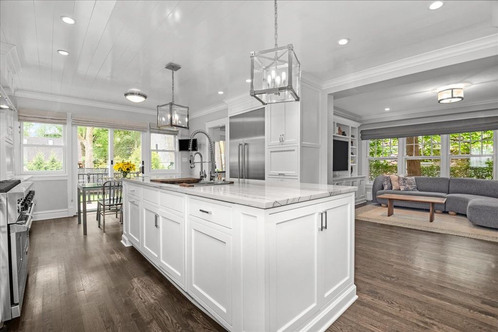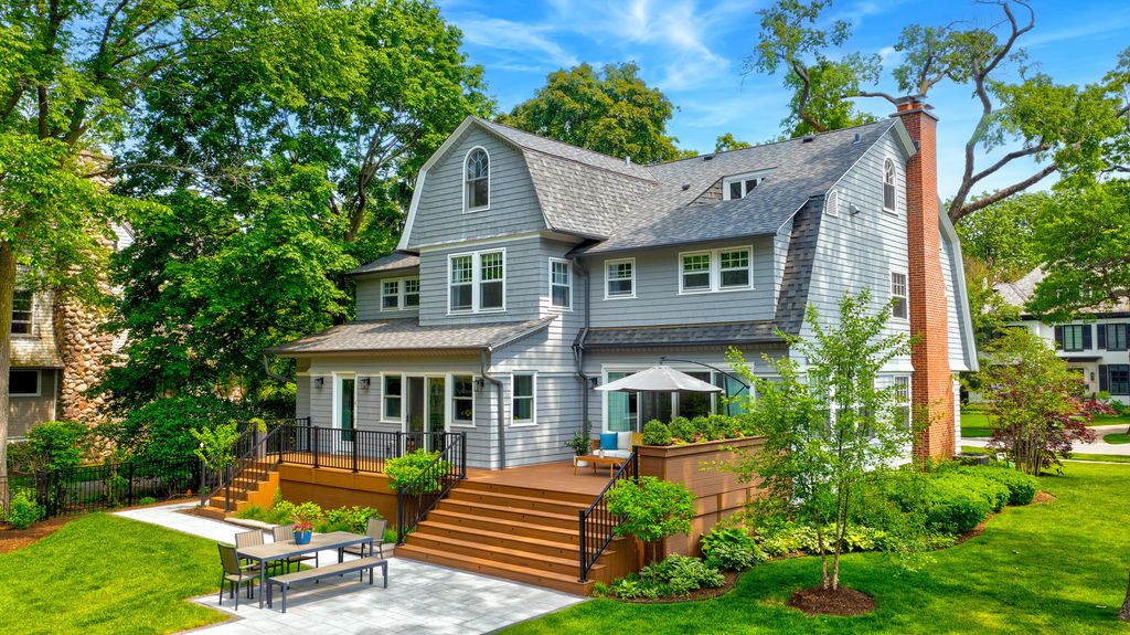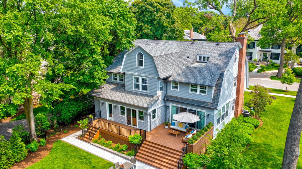 Set on a 100 x 175 lot in the heart of Kenilworth, this iconic Colonial has been completely reimagined through a $1M+ renovation, seamlessly blending timeless design with the ease of modern coastal living. A grand front porch welcomes you with architectural charm, perfect for morning coffee, quiet conversation, and lake breezes. Inside, the main floor offers four flexible living spaces that can be easily tailored to fit your lifestyle. The chef's kitchen features quartzite countertops and backsplash, custom cabinetry, premium appliances, a walk-in pantry, and a hidden desk nook, flowing into a casual family room and a fully fenced backyard with a new TimberTech deck and landscape lighting. Upstairs includes five spacious bedrooms, including a serene primary suite with fireplace, spa-like bath, walk-in closet, and second-floor laundry. The third floor offers two additional bedrooms and a full bath, ideal for a guest suite, creative studio, or home gym. A newly renovated basement with wet bar, Miele Refrigerator and additional 1/2 bath adds further versatility. Detached, newly built 3-car garage with EV charger and generous storage. All just blocks from the lake, beach, train, and Kenilworth's award-winning schools. Coastal charm and timeless living in one exceptional home.