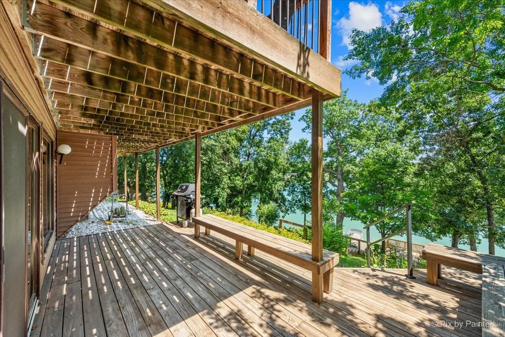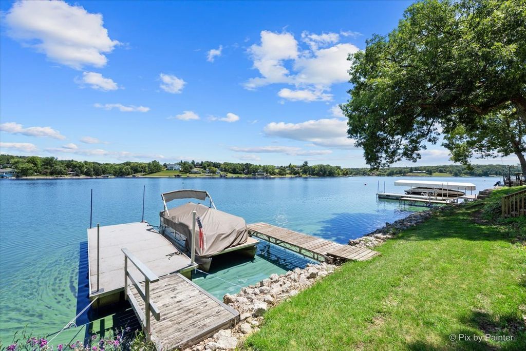 Experience the very best of lakefront living in this beautifully maintained, custom-built waterfront home on scenic Lake Carroll. Meticulously cared for by a longtime owner, this bright, immaculate property offers 144 feet of private shoreline and sits on nearly two-thirds of an acre of manicured grounds with breathtaking panoramic views. It's one of the most usable and desirable waterfront lots on the lake-spacious enough to comfortably accommodate two boats with lifts, two jet skis, and additional dockage. Whether you're into fishing, watersports, or leisurely cruises, it's like having your own private marina, complete with an oversized garage perfect for storing all your lake toys and gear. Inside, the main level features soaring 14' cathedral ceilings, Marvin high-efficiency windows, and a dramatic "greenhouse" window wall that floods the home with natural light and captures sweeping lake vistas. The open-concept living area includes Hunter-Douglas window treatments (three motorized), ceiling fans throughout, and a flue-less wood-burning fireplace with a Brazilian marble surround, delivering warmth and ambiance. A spacious 6' x 40' upper deck overlooks both the hillside and the water, providing an ideal space to relax or entertain. The lower level is a private wellness retreat, complete with a jetted whirlpool tub with dual motors and in-line heater for optimal comfort, and a six-person sauna with its own shower. Recent updates include new vinyl entry stairs and a new stairway with a lower deck leading to the shoreline, both completed in 2024. Additional highlights include a 2009 roof, 400'+ deep well with 2012 pump, 2016 HVAC, a 22,000 kW whole-house generator, an R/O drinking water system with UV purification, and an oversized 3.5-car heated garage with durable polyurea flooring. This home is being offered fully turnkey and includes all furniture, artwork, tools, and equipment, along with a 2003 Sweetwater 20' pontoon boat (with a 2016 60hp Mercury 4-stroke outboard and 2021 covers), an 8' x 24' floating dock, a 4' x 16' fixed dock, and a 2011 Kawasaki two-passenger utility vehicle. Everything you need is already here-just show up and enjoy. Whether you're looking for a full-time residence, a weekend escape, or a ready-to-enjoy vacation home, this exceptional Lake Carroll property delivers the ultimate in waterfront living. Lake Carroll is Illinois' best-kept secret-a private, year-round resort community offering 640 acres of spring-fed lake, a top-rated 18-hole golf course, indoor and outdoor pools, ATV and snowmobile trails, a marina, equestrian center, and more. Residents enjoy four seasons of recreation, from boating, fishing, and paddle boarding in summer to skiing, snowmobiling, and cozy fireside retreats in winter. With over 22 miles of shoreline and scenic rolling hills, Lake Carroll delivers the perfect blend of natural beauty, upscale amenities, and peaceful privacy-just a couple hours from the Chicago suburbs.