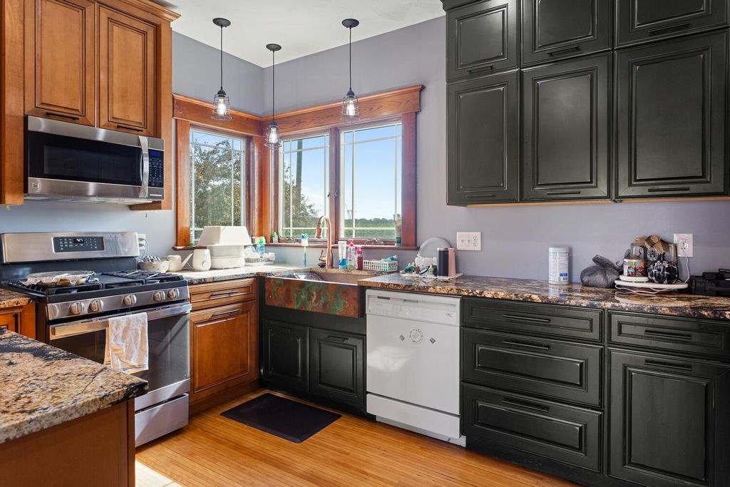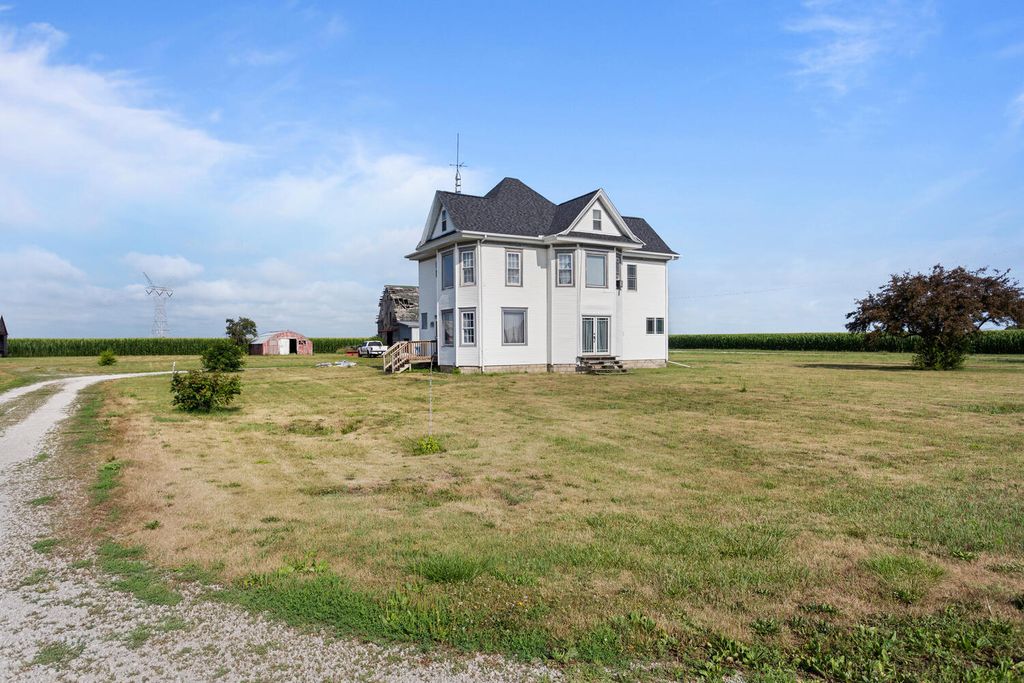 Enjoy the peace and quiet of country living on 3 acres outside of Pontiac! This 2 story home features 4 bedrooms, 2 full bathrooms, and is full of updates! Step into the new mudroom w/ utility closet and full bath, which leads to either the full basement w/ 2 sump pumps, or the beautifully updated kitchen w/ a copper farm sink and new appliances. The main level has hardwood flooring and original woodwork throughout, including pocket doors between the separate dining room and living room. The main level bedroom could also be used as an office or playroom. The 2nd level holds 3 more bedrooms with newer carpet and paint, and the 2nd full bath. This massive bathroom has floor heat, a claw foot tub, a HUGE shower with a rain showerhead, contains the laundry area, AND leads out to a balcony overlooking the backyard! Go up the stairs to the 3rd level attic for even more living space! It's been started, so you can finish it to add more bedrooms, storage, whatever you'd like! The 3 car garage was added in January 2025, as well as a 2nd gravel lane and parking area. Plenty of land to plant a garden next to the apple trees, add an outbuilding, put up fence, tons of possibilities! *NEW* in 2021/2022; furnace, AC, some first level windows, some interior lighting, all kitchen appliances. *NEW* roof 2025. Chest freezer in basement will stay as well.