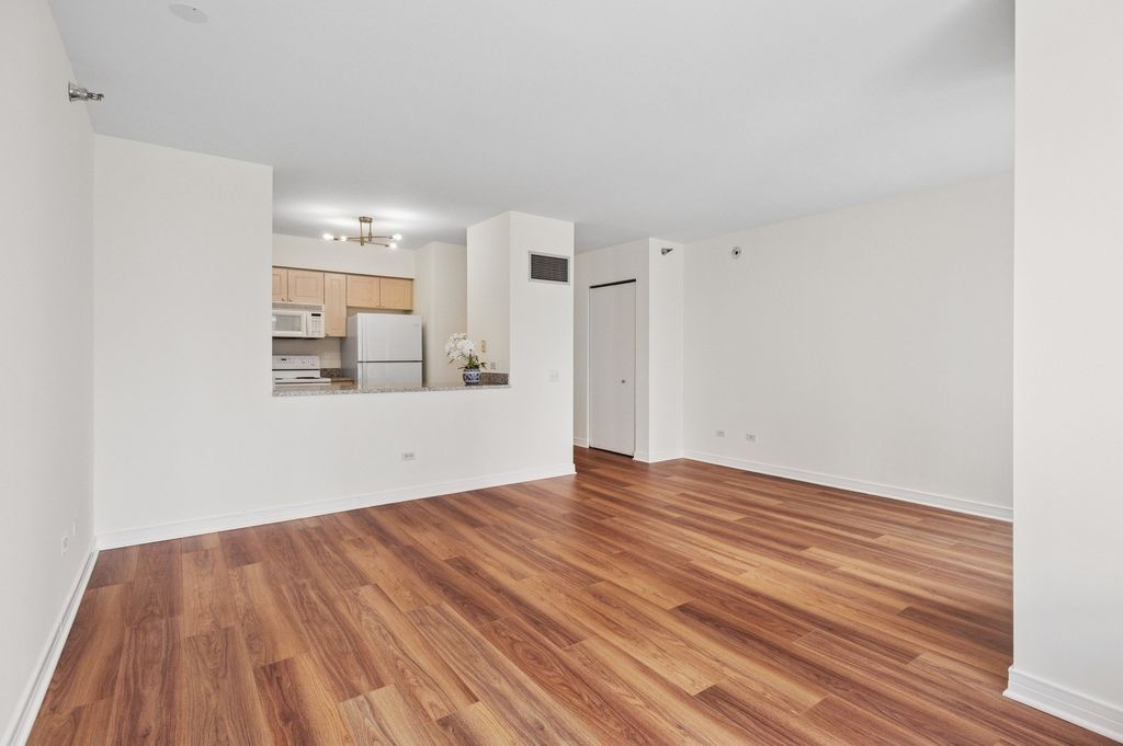 Lovely city/river views from this freshly decorated unit, with new wood floors and new paint. Good closet space, large kitchen. prime location in booming Streeterville just steps to everything: Ohio Street Beach, Navy Pier, Michigan Ave., Walgreens, Dining, and AMC movie theater. Building offers sundeck for grilling, fitness center, 24 hr. Door staff, party room, cleaners, work out room and a lot more .