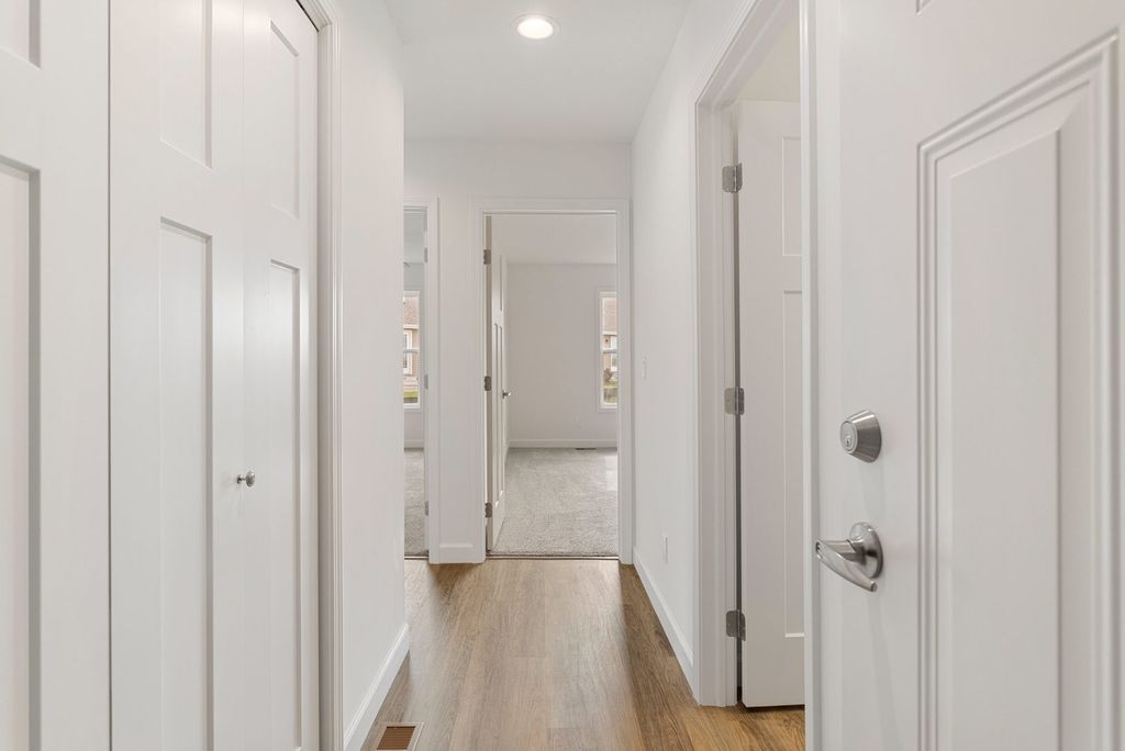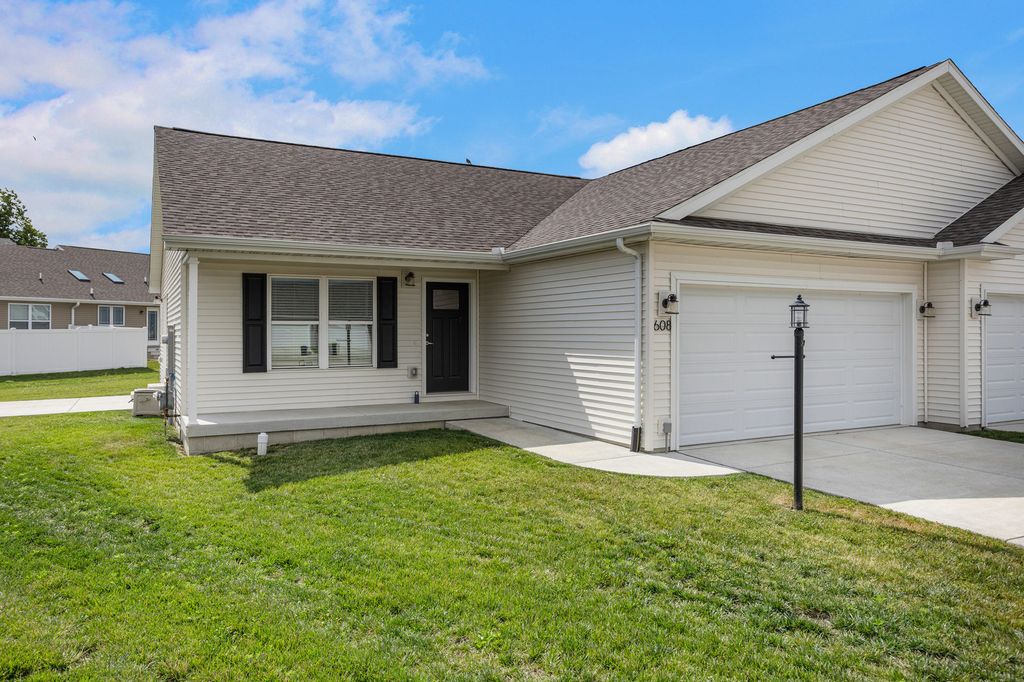 THE BERKLEY, is a 1-story Zero Lot-Line (Duplex) Residence on crawl offering 2 bedrooms, 2 bathrooms, eat-in kitchen WITH appliances, living room, laundry room and patio slider leading out to a 12 x 12 concrete patio. Spacious primary suite with private bathroom including shower. A second full hall bath with tub/shower. Approximately 1115SF, a 2-car attached garage, seeded yard and highly desired 2 x 6 construction. Finishing touches include white Mantra cabinets, laminate kitchen countertops, cultured marble bathroom countertops, Luxury Vinyl Plank flooring, carpet in bedrooms and brush nickel plumbing fixtures. Enjoy small town living at its finest with eateries, small businesses, bank, USPS, gas station, community park, Fisher Schools and so much more!
