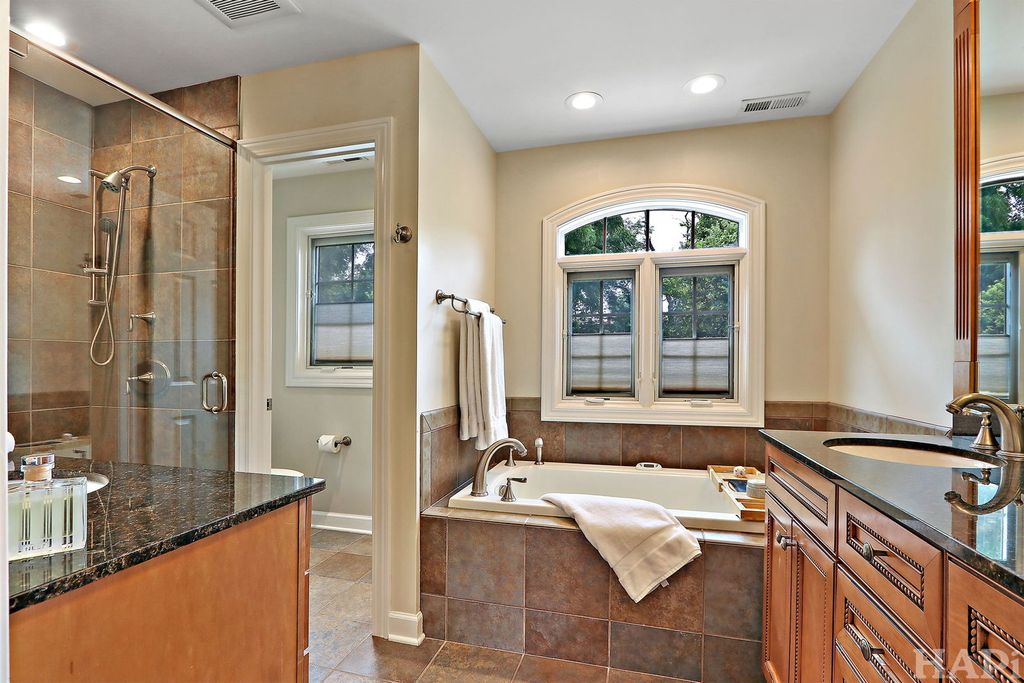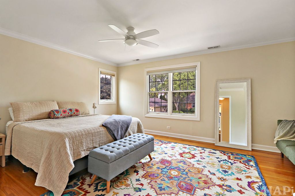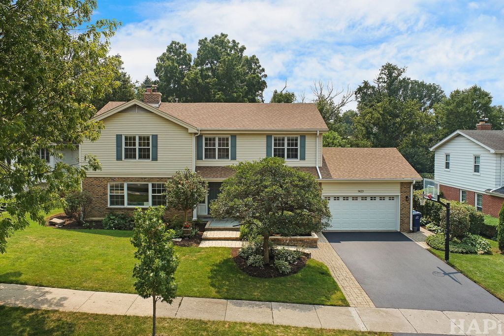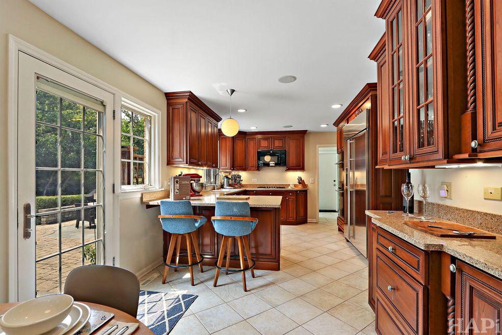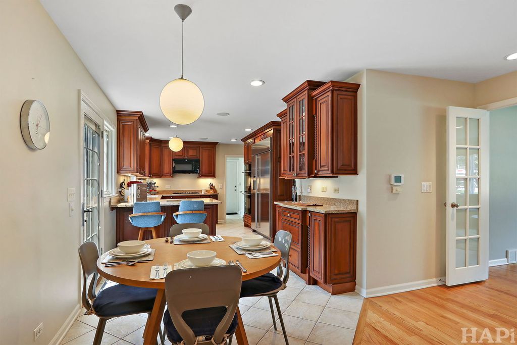 Outstanding Updated Home in Sought-After District 28 Location! This beautifully maintained home offers the perfect blend of modern updates, exceptional curb appeal, and a prime East Northbrook location-just a short walk to town, Starbucks, top-rated schools, parks, pool, and the train. Nestled in a desirable neighborhood, the home welcomes you with an attractive double front door with sidelights, newer pella windows, a paver walkway, and a charming bluestone front porch-an ideal spot to gather with neighbors. Inside, the sun-filled interior features gleaming hardwood floors throughout the main level and an open, flowing layout designed for both everyday living and entertaining. The updated kitchen boasts cherry cabinetry, stainless steel refrigerator, double oven, gas cooktop, granite countertops, decorative glass-front cabinets, barstool seating, a casual dining area, and direct access to the backyard. The kitchen seamlessly opens to the family room, complete with custom built-ins, a fireplace, and French doors leading to the living room. A dedicated home office provides a quiet workspace with built-in desk and shelving, a walk-in closet, and a glass door. Just off the kitchen, the spacious laundry/mudroom offers additional functionality with access to both the backyard and the oversized two-car garage with abundant storage. The main-floor powder room is appointed with wainscoting and a granite-topped vanity. Upstairs, the generous primary suite features a large walk-in closet with custom shelving and drawers, along with a luxurious en-suite bath offering dual vanities, a soaking tub, a separate shower with handheld sprayer, and a private water closet. Three additional bedrooms provide ample space and closet storage, while the updated hall bath includes a granite double vanity and a separate shower/tub area. The finished lower level adds valuable living space with a spacious recreation room featuring a built-in bar with full-size refrigerator, rich walnut cabinetry, and built-in bench seating. A dedicated gym with rubber flooring and wall mirror completes the space. Plentiful storage throughout. Additional exterior improvements include a newer roof, driveway, and garage door. The fully fenced backyard is a private, professionally landscaped retreat with mature trees and a stunning paver and stone patio-perfect for entertaining or relaxing. This is a rare opportunity to own a move-in-ready home that has been thoughtfully updated and meticulously maintained-inside and out.