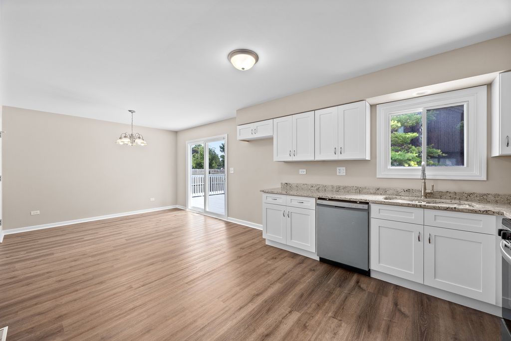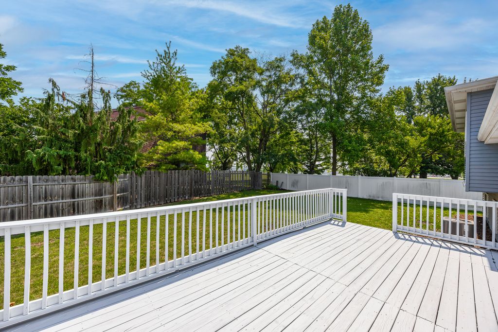 LISTED FOR SALE ONLY, NOT LISTED FOR RENT. Gorgoeus split level home in Indian Boundary Subdivision. This home has been refreshed throughout and is move in ready. Brand new carpeting and flooring throughout. Freshly painted from top to bottom. Large living room area. French doors lead to the dining area. New white cabinetry, granite counter tops and stainless-steel appliances in the kitchen. Ceramic tiled finishes in the bathrooms and updated vanities with granite tops. White trim and doors. Fireplace in the family room. The partial basement is unfinished and provides great storage or potential living space if finished out. Other great amenities include a 2-car attached garage, fully fenced yard and a rear deck that has been freshly painted.