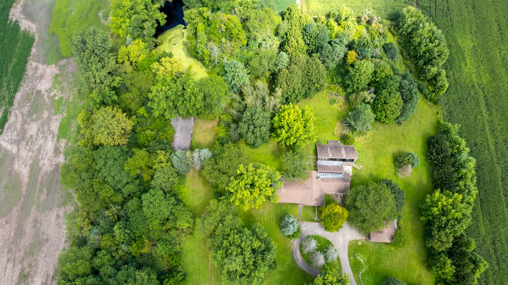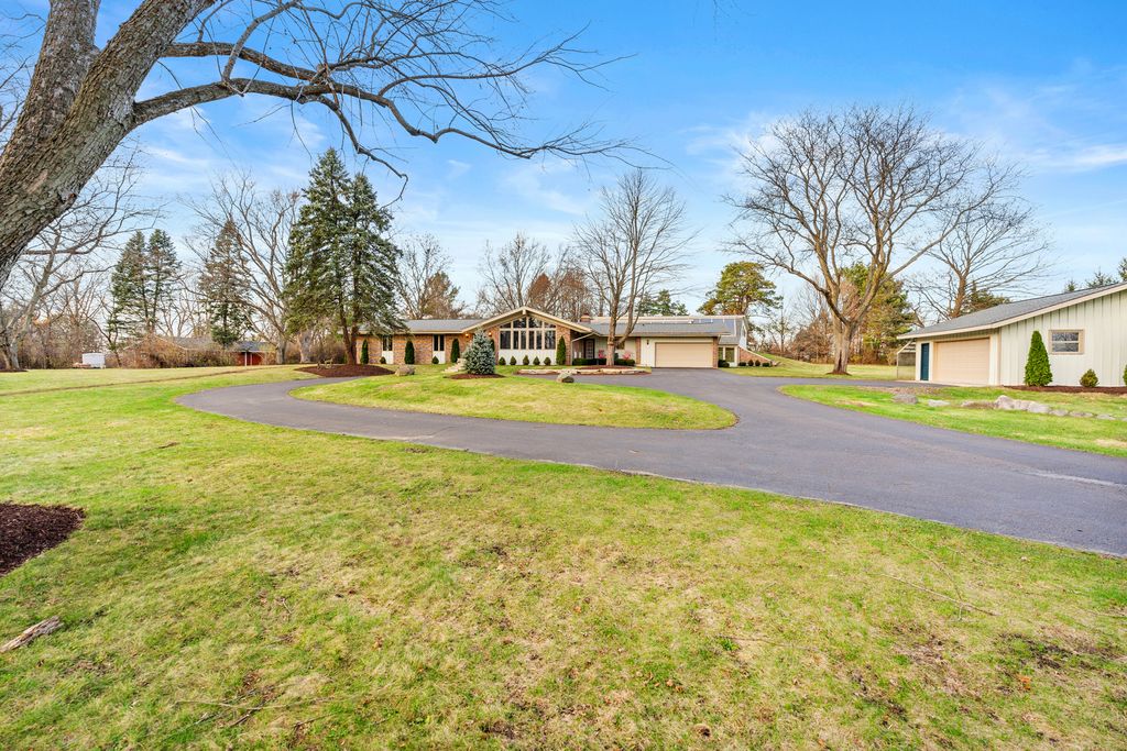 From the moment you drive through the electronic gates you'll want to call this one home. Stunning 5000 square foot Brick and cedar ranch on 5 acres. This 3 bedroom 3 bath home boasts hardwood flooring, granite, custom millwork ,6 panel doors first floor laundry, steam room, and so much more. The open concept of the living, dining and gourmet kitchen are absolutely ideal for entertaining. The vaulted wood ceilings and fireplace really make a statement.The master bedroom has its own private bath with walk in shower, and a private deck. Another unique feature of this home is the indoor patio with heated stone flooring. This area is also roughed in for a wet war. The recreation room adjoins the patio with soaring wood ceilings, trapezoid windows, sliding glass doors leading out to the stamped concrete patio. Great area for a golf simulator,Atrium, archery or whatever you desire. Partially finished basement with heated floors. 2 car attached garage and 2 car detached garage. All of this and so much more on a professionally landscaped gorgeous 5 acre lot zoned AG. Natural gas, not propane for heat.