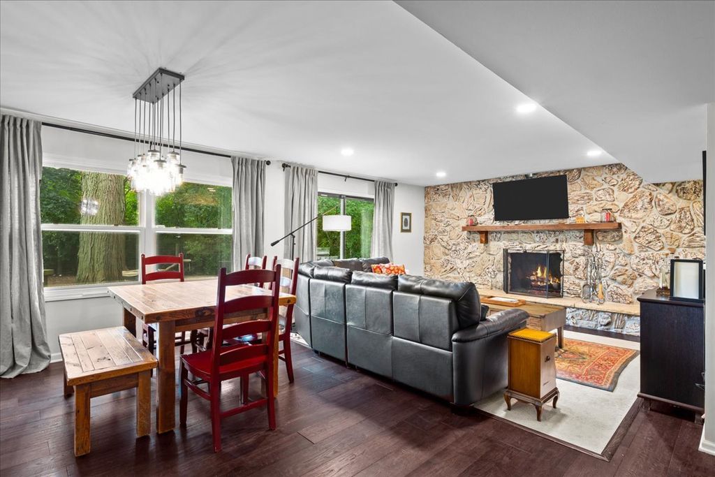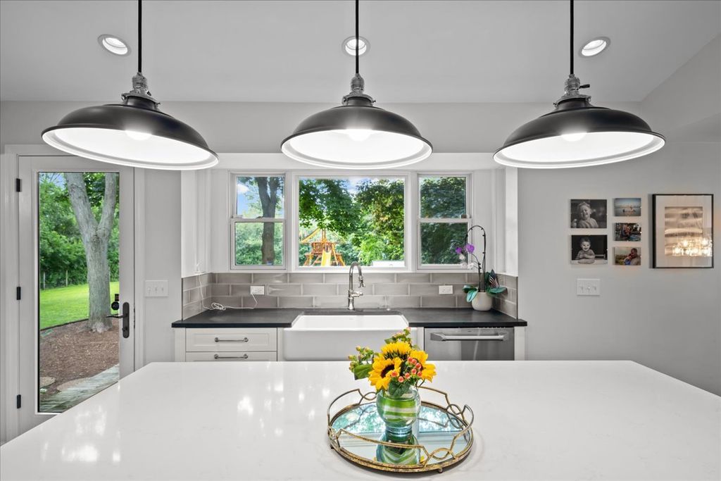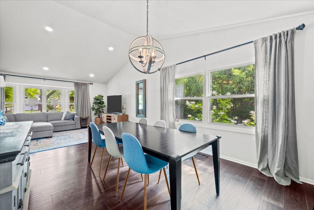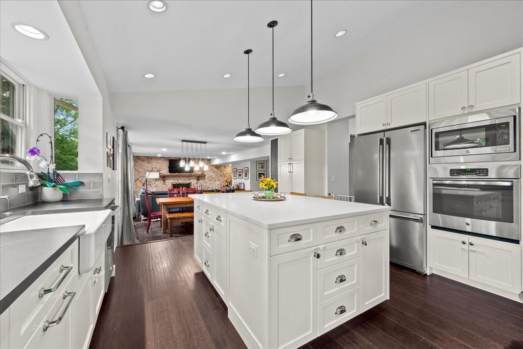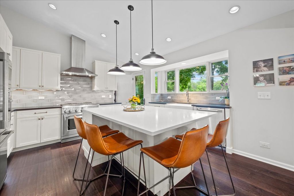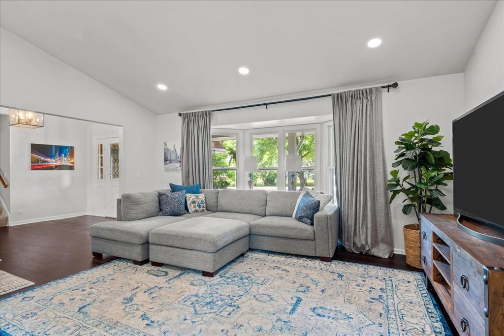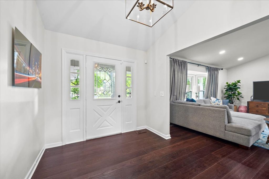 Beautifully situated on an idyllic one-acre lot, this stunning home was fully renovated in 2015 and offers a fabulous open floor plan with wide-plank hardwood floors and designer lighting throughout. The living room, featuring a charming bay window, flows effortlessly into the vaulted-ceiling dining room. The gourmet kitchen boasts a quartz island and an adjoining breakfast area, perfect for everyday living and entertaining. A cozy family room with a gas-start fireplace and wet bar invites relaxation, while the convenient mudroom connects directly to the attached two-car garage. Upstairs, you'll find four spacious bedrooms and two tastefully updated bathrooms, including a luxurious primary suite with a private bath. The lower level offers generous recreation space, ample storage, and a newly finished home office. Outside, the expansive, fully fenced yard provides the ideal setting for play, gardening, or outdoor gatherings. Enjoy the peace and privacy of a country setting while being just steps from Lake Bluff Elementary School and the Park District featuring community pool, golf course, tennis courts, and more!