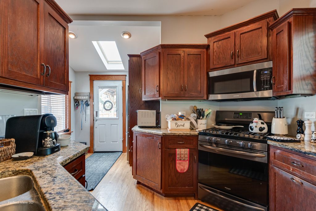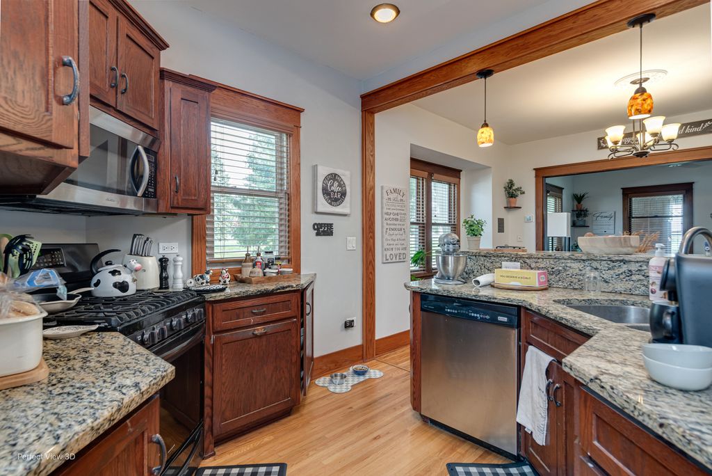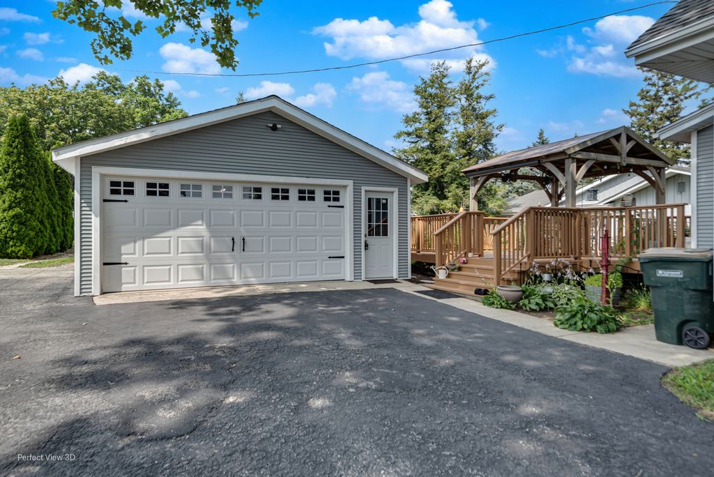 This well-redesigned bungalow in Oswego school district, sits on over half an acre, minutes away from the conveniences of the Route 59 corridor. Enjoy the view from your back deck or step down to the large patio. 2.5-car garage plus large shed in back that holds 3 more vehicles. Lots of yard! Quality workmanship is obvious inside that includes a little of old and new. Custom kitchen cabinetry welcomes you from the back door. Granite countertops and SS appliances appoint the space which opens to the dining room and the family/living space. Gorgeous Master bed and bath on main level includes separate tile shower granite-topped double vanity and built-in closet. Upper level includes a bedroom Suite, including the half-bath and loft. Other features include newer windows, zoned climate control, with 2 SpacePak units, updated electric and plumbing, & recessed lighting. New in 2023: high efficiency water heater, sump pump, furnace and AC. Partially finished basement includes original 5-panel doors. Oswego schools!