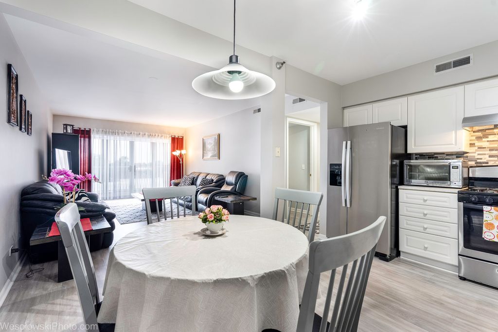 Top floor in highly desirable luxury Renaissance Complex!! 2 large bedrooms, 1 full bath. Spacious eat-in kitchen with plenty of cabinets/counter space open to large living room/dining room combo. Stainless steel appliances. Radiant heat in the floor is included in HOA. Secured lobby access. Heated garage spot #19 with private storage room included. Building has updated hallway with new carpet and paint. New roof 2022. The complex is meticulously maintained with gorgeous landscape grounds and plenty of guest parking. Great location!!!