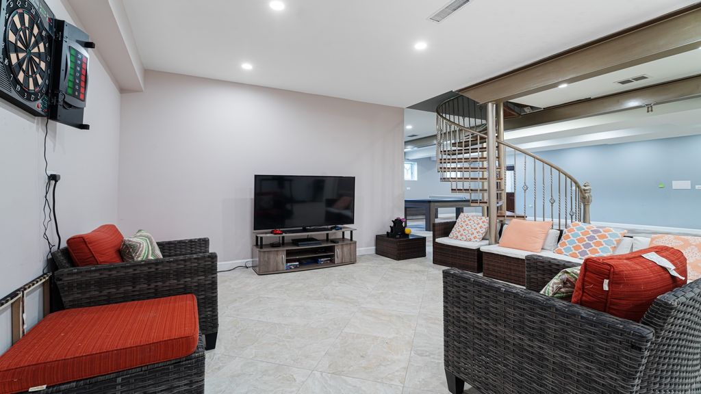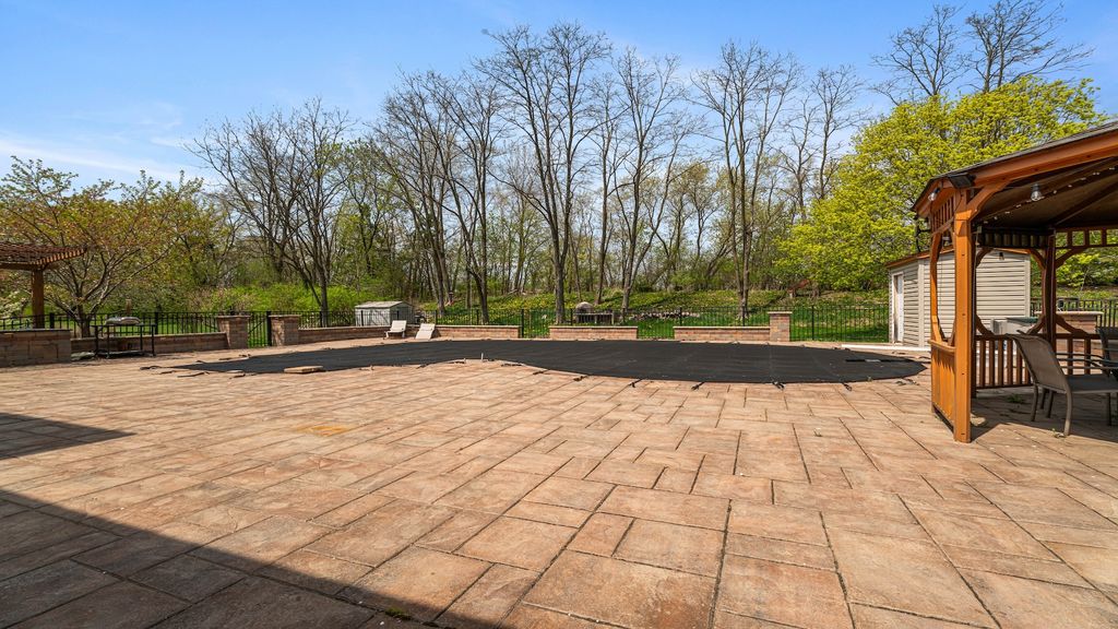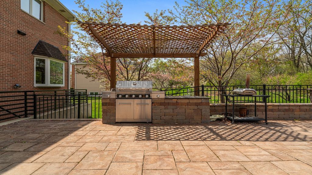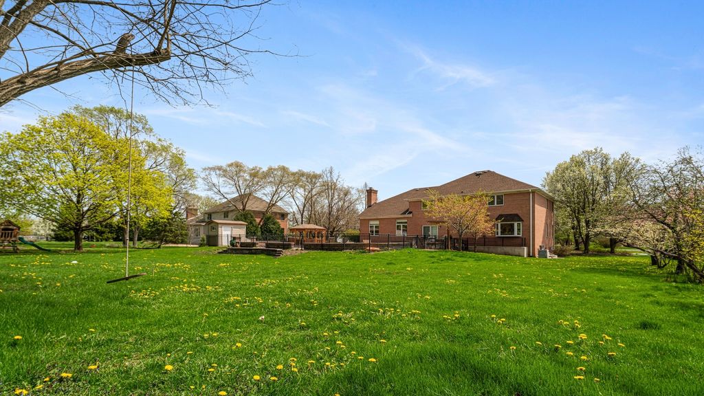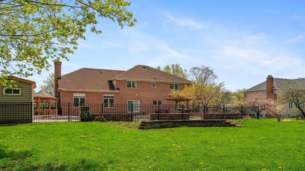 Welcome to 25909 N Arrowhead Drive-your private retreat in the highly desirable Indian Meadows neighborhood of Mundelein. This stunning 6-bedroom, 5.1-bathroom home spans over 5,800 square feet and offers an ideal blend of timeless elegance, thoughtful upgrades, and expansive indoor-outdoor living-all situated on a beautifully landscaped lot. Step into the grand foyer and be greeted by natural wood flooring, soaring ceilings, and abundant natural light. A dedicated office with upgraded glass doors offers inspiring views, perfect for working from home. The formal living and dining rooms flow seamlessly into the inviting family room with a cozy fireplace-ideal for both entertaining and everyday relaxation. The gourmet kitchen is a chef's dream, featuring granite countertops, refinished oak cabinetry, stainless steel appliances (including a new fridge (2024) and dishwasher (2025)), and a newly updated ceiling (2021). Sliding doors off the kitchen lead to your private backyard oasis, where outdoor living reaches new heights. Upstairs, you'll find four spacious bedrooms, including a luxurious primary suite with a large walk-in closet and spa-inspired en suite bath. The finished basement offers additional versatile living space, complete with a guest bedroom, full bath, and private walkout access to the backyard-ideal for in-law arrangements, a movie room, home gym, or recreation space. Enjoy summers in your in-ground pool, complete with a full outdoor bathroom, two gazebos, a wood-burning outdoor oven, and extensive hardscaping. The backyard staircase to the basement, zip line, invisible dog fence, and removable pool enclosure add fun and functionality. Recent updates include a new roof (2021), water heater (2021), washer/dryer (2022), AC condenser (2021), driveway (2021), and more. With a 3-car attached garage, beautifully maintained landscaping, and easy access to local parks, schools, and amenities, this well-kept home is ready for its next chapter. This is a rare opportunity to own a truly special property in a serene and sought-after setting.