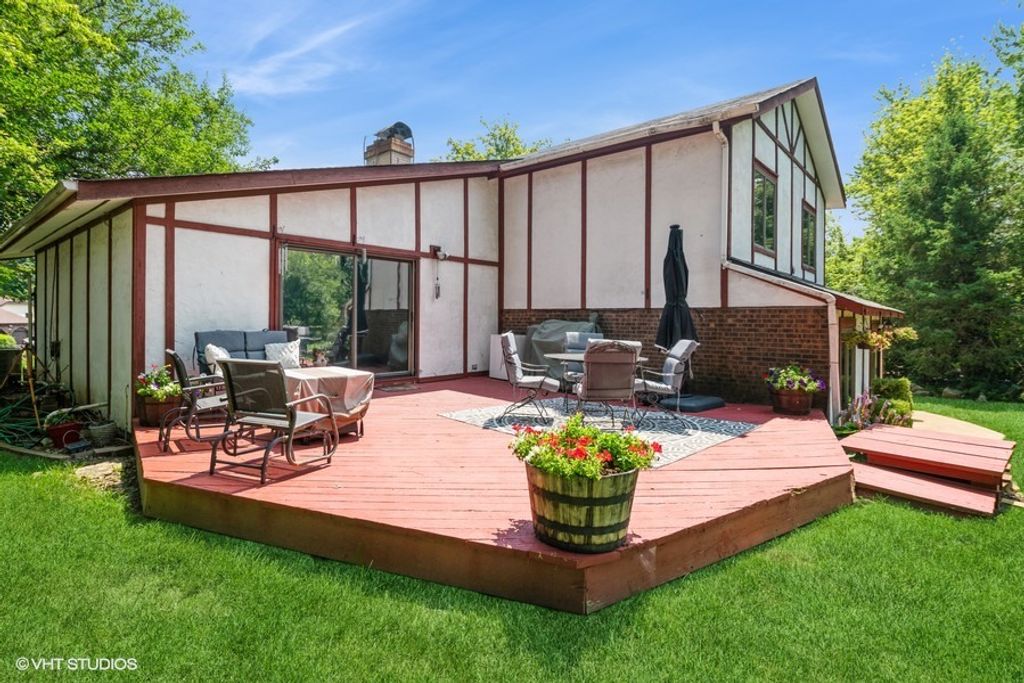 Charming Tudor-style home on 0.52 acres in Elgin, sold As-Is. Features 4 beds, 2.5 baths, 3,291 sq ft plus finished basement. Updated kitchen (2010) with granite & marble, hardwood floors, cozy fireplace, and lofted master suite. Peaceful yard with deck, hot tub, 2-car garage, and room for 8+ cars. Located in U-46 School District near Randall Rd. Move-in ready with timeless style and modern comfort. With a little love & TLC this is the perfect forever home! Sellers are open to negotiation. Brand new sliding glass door in the kitchen with a Pella patio door (August 2025).