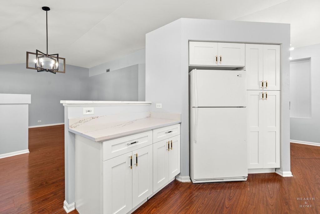 Step into comfort and style in this beautifully updated 2-bedroom, 2-bath condo on the desirable second floor. From the moment you walk in, you'll be greeted by a bright, open layout that feels both spacious and cozy, perfect for relaxing or entertaining! The brand-new kitchen is the heart of the home, featuring modern cabinetry, sleek countertops, sink, and fixtures! Enjoy your morning coffee at the breakfast bar or unwind on your brand new private balcony after a long day! Both bedrooms are generously sized, with plenty of closet space and natural light. The primary suite offers its own ensuite bath with dual vanity and separate shower. Additional highlights include in-unit laundry, updated flooring, and fresh finishes throughout. Bonus room could be formal dining, den, office, 3rd bed.. only your imagination can stop you! Located close to shopping, dining, parks, and ponds while surrounded by a golf course, this condo offers the perfect blend of convenience and comfort. Whether you're a first-time buyer, downsizing, or simply looking for a move-in-ready home, this one has it all!