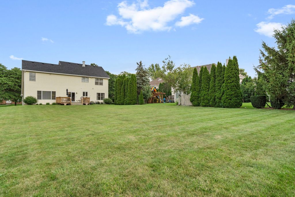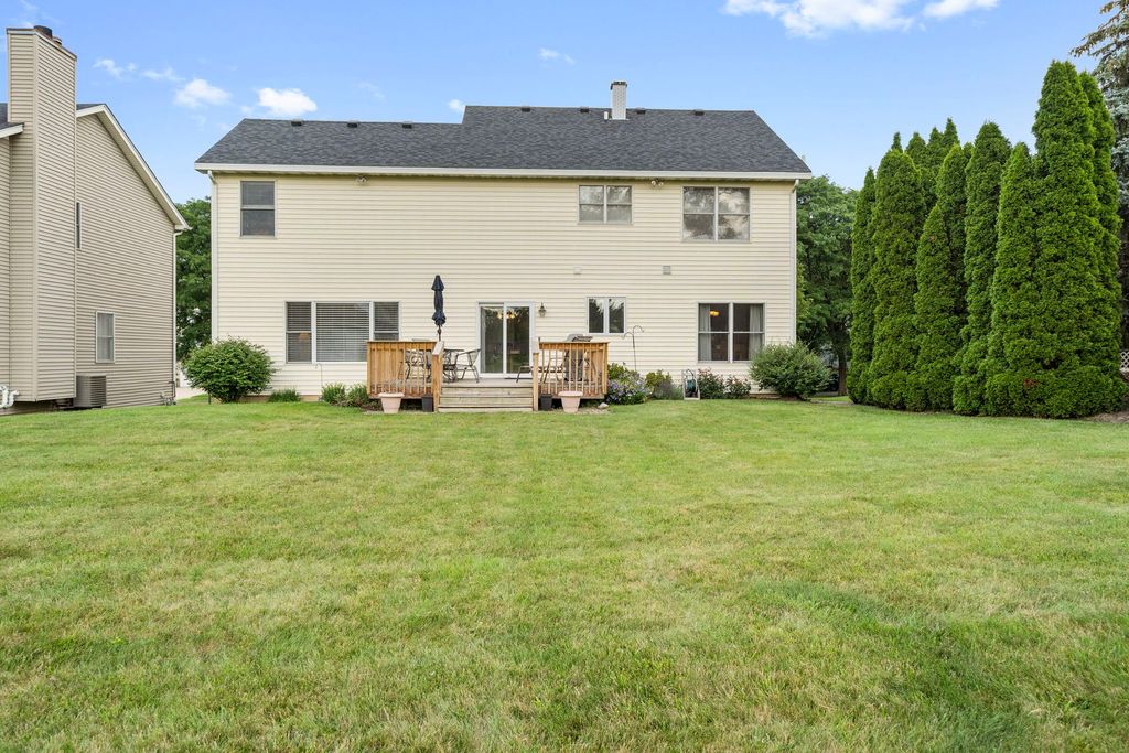 Step into this beautifully maintained 4-bedroom gem, where comfort and functionality shine throughout. The spacious first floor welcomes you with a bright living and dining area that seamlessly connects to an eat-in kitchen featuring a central island, flowing into a generous family room ideal for gatherings. Upstairs, 4 well-sized bedrooms await, including a tranquil primary suite with a private bath and walk-in closet. Freshly painted interiors create a crisp, move-in-ready feel, while the finished lower-level recreation room adds space for relaxation and play. A utility room offers laundry facilities, workspace, and ample storage. Recent updates include a newer HVAC system and roof, and the attached 2-car garage boasts a vaulted ceiling for extra dimension. Outside, enjoy summer BBQs on the large deck and endless fun in the oversized backyard-the deep lot (68 x 204) is perfect for baseball, volleyball, or simply soaking up the sunshine. Conveniently located near Yorktown Center, along with other shopping. Many dining destinations nearby such as Cooper Hawk, Greek Isles, Yard House and Portillo's. Close to transportation I-355, I-88, Metra. Welcome Home!